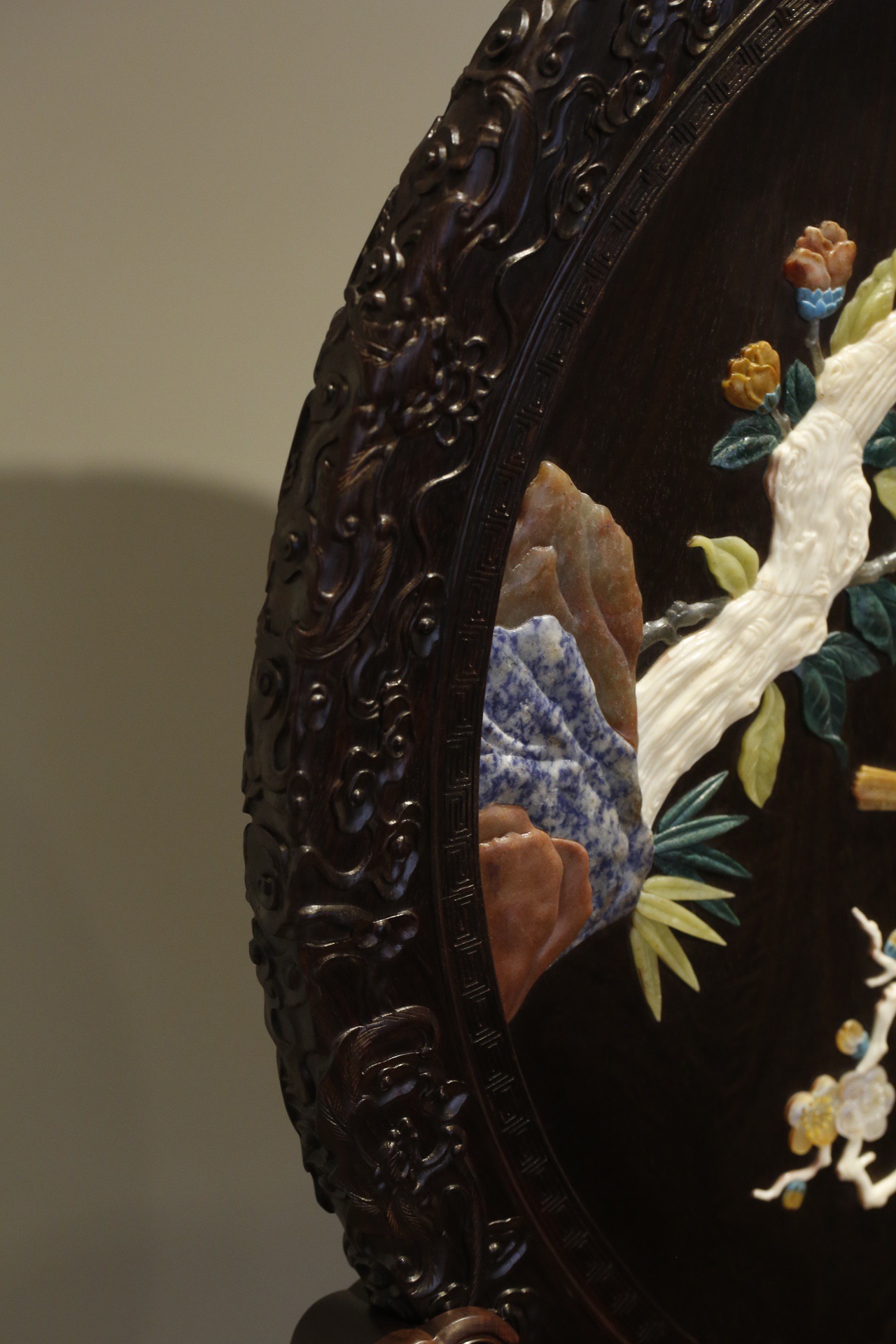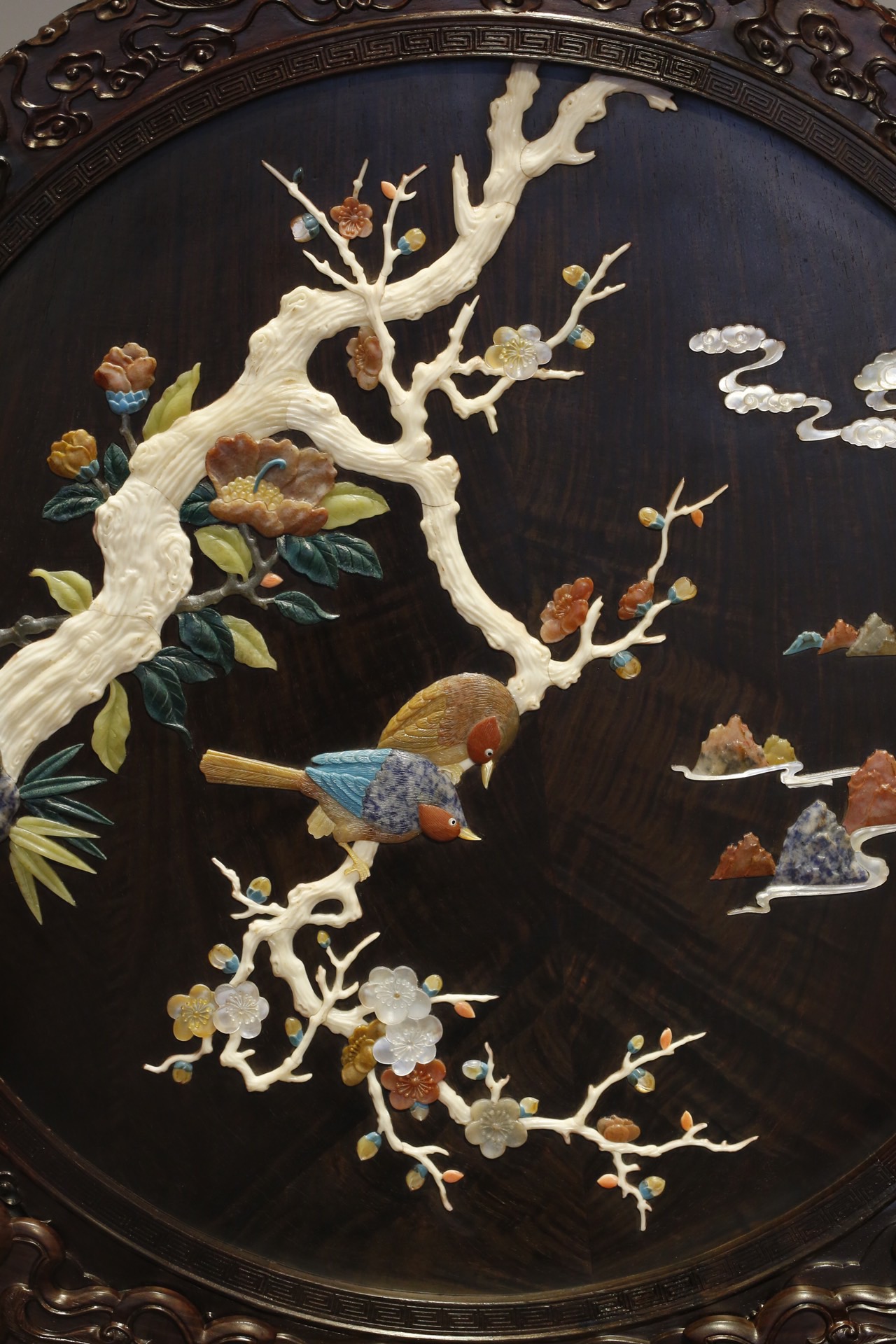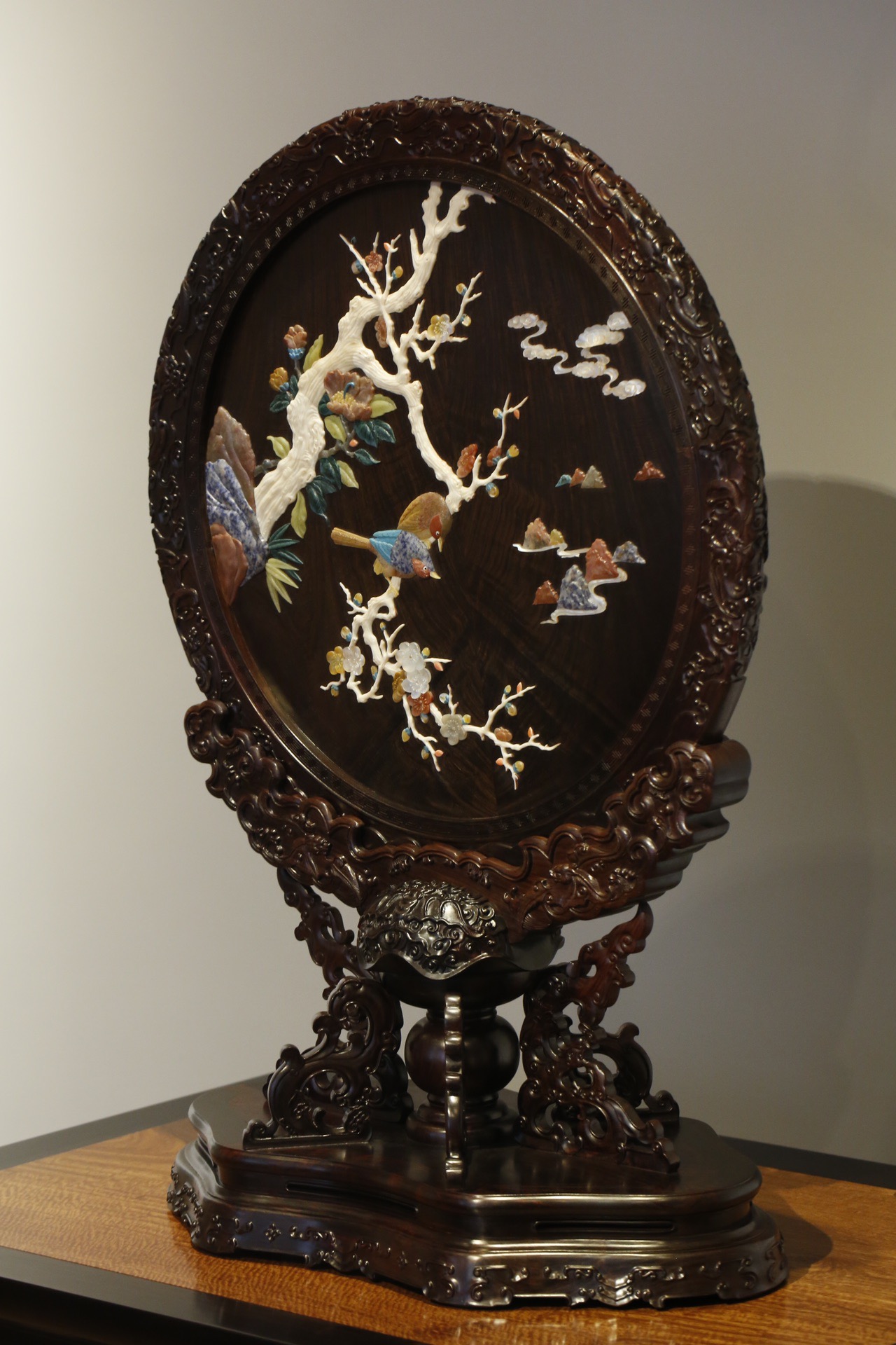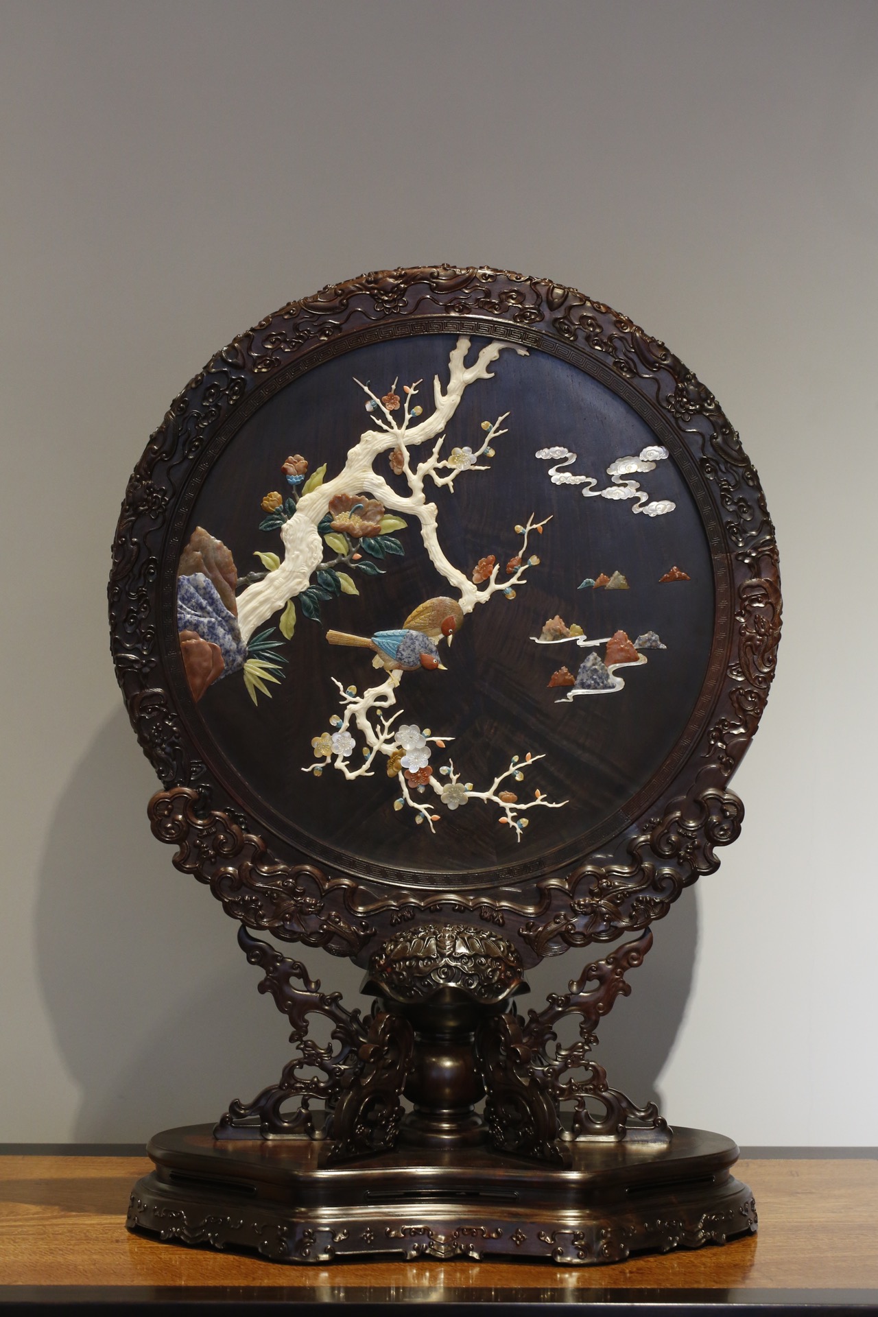 老挝大红酸枝X百宝嵌【喜上眉梢】插屏