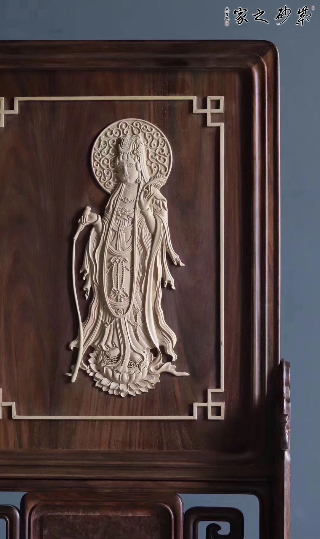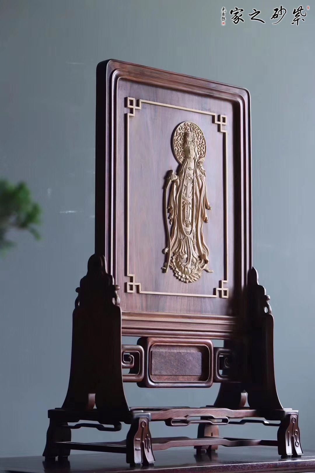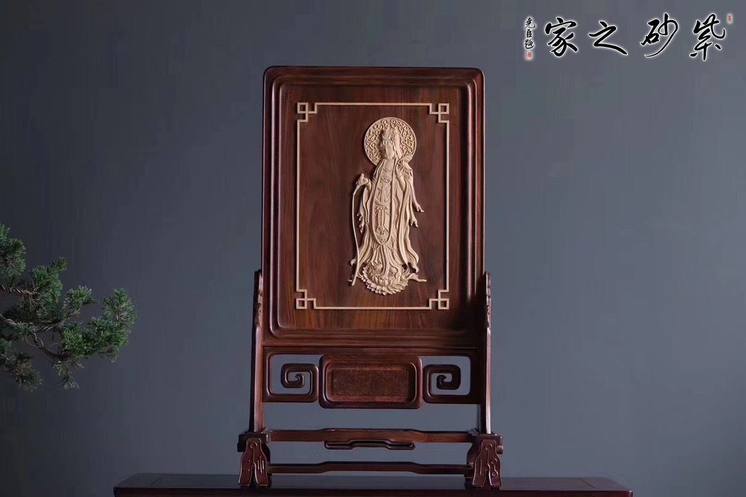 『品名』大红酸枝|经典苏款净瓶观音插屏