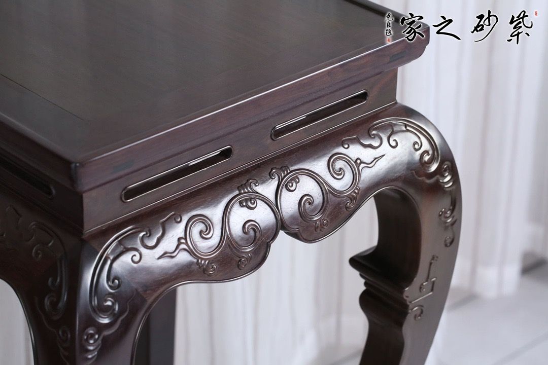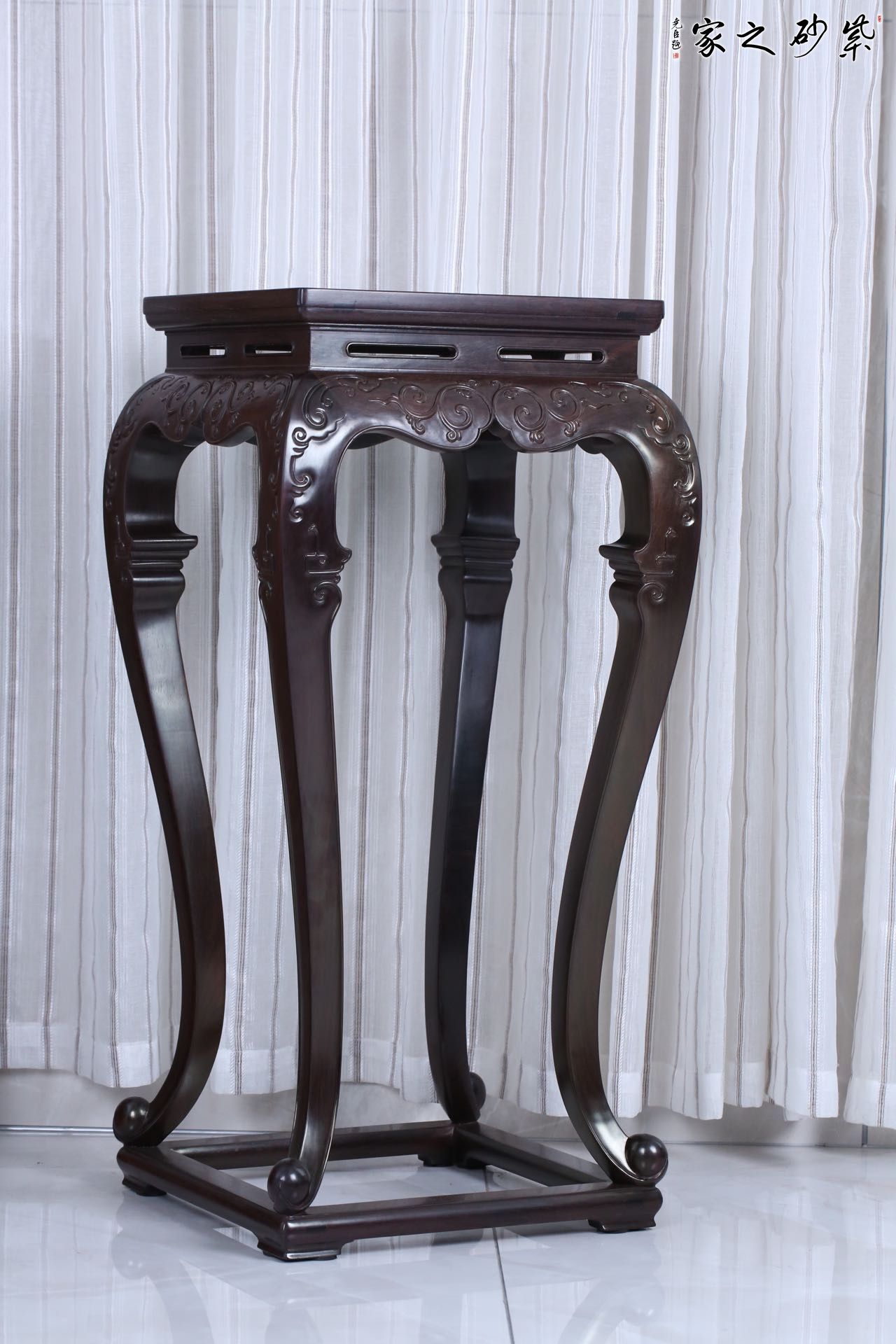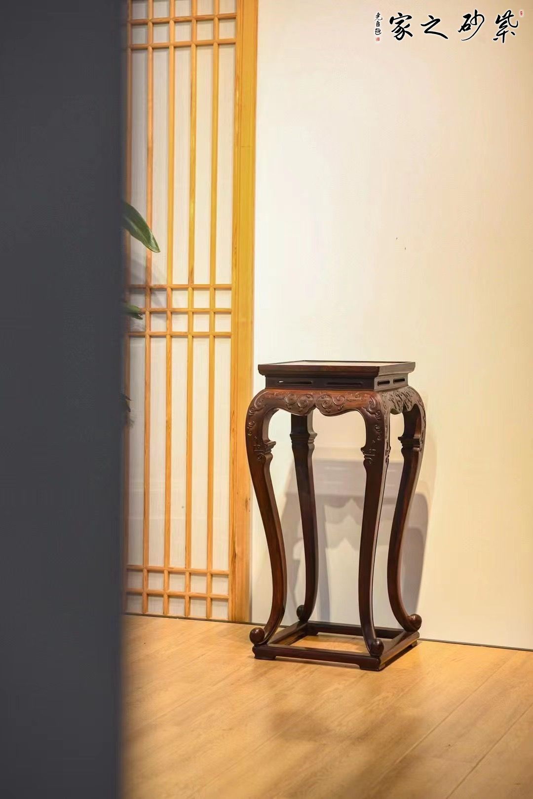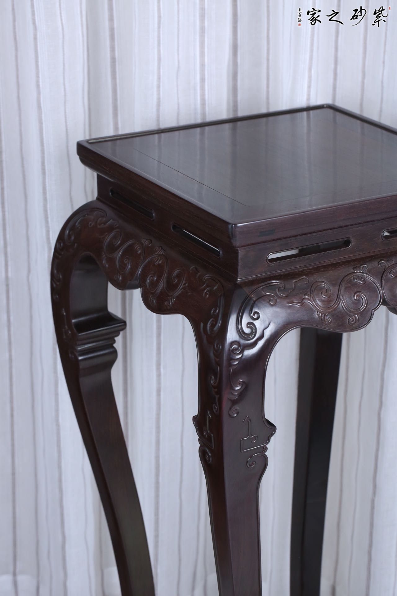 『品名』大红酸枝|『 卷草纹四足三弯花几两件套 』