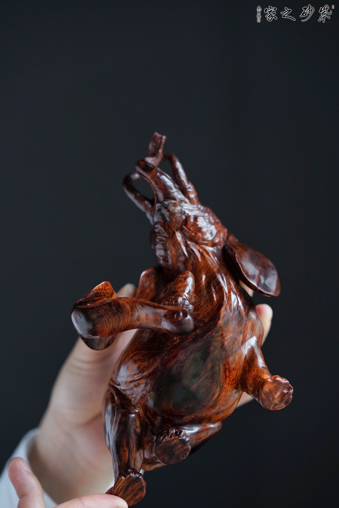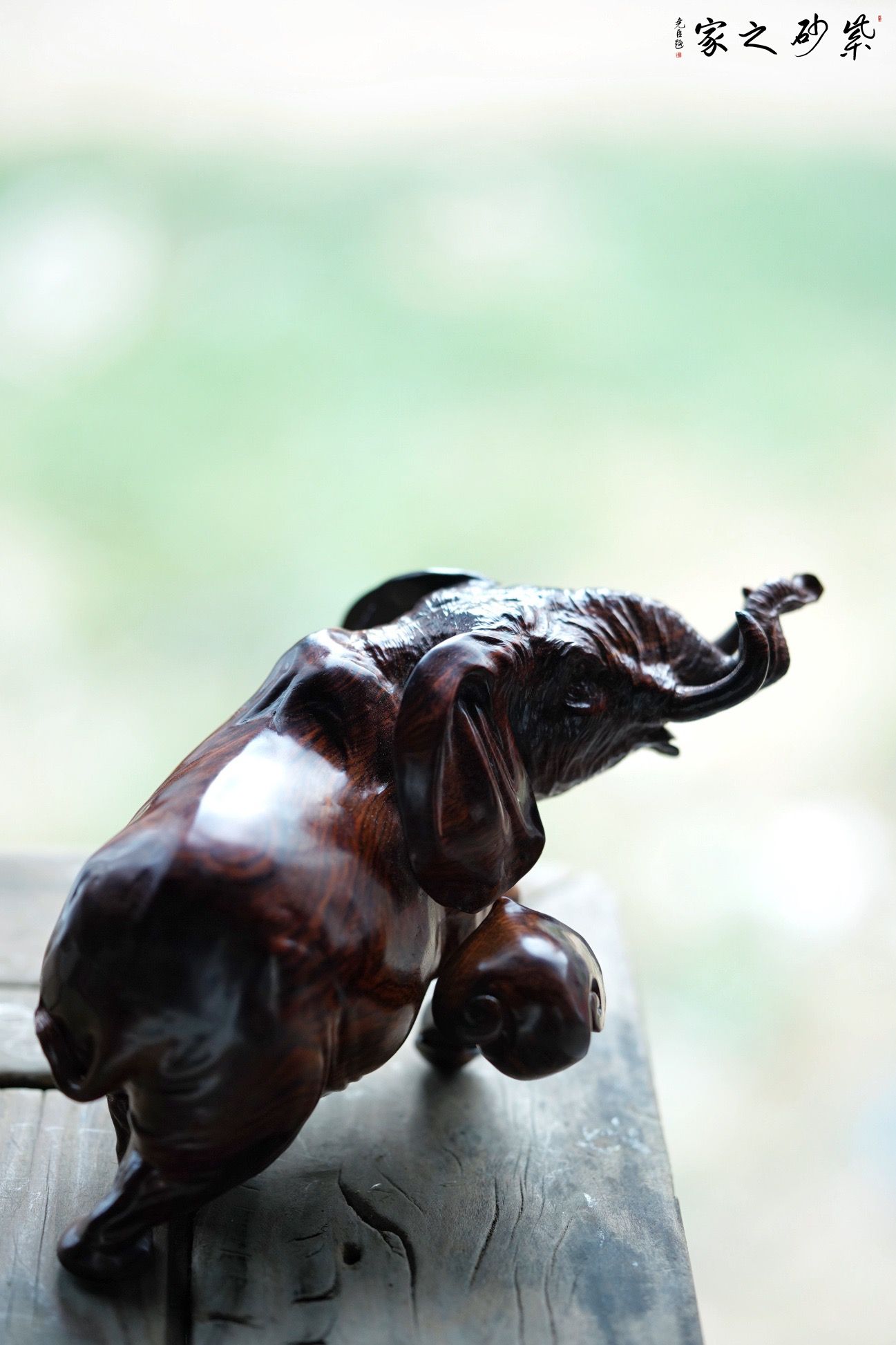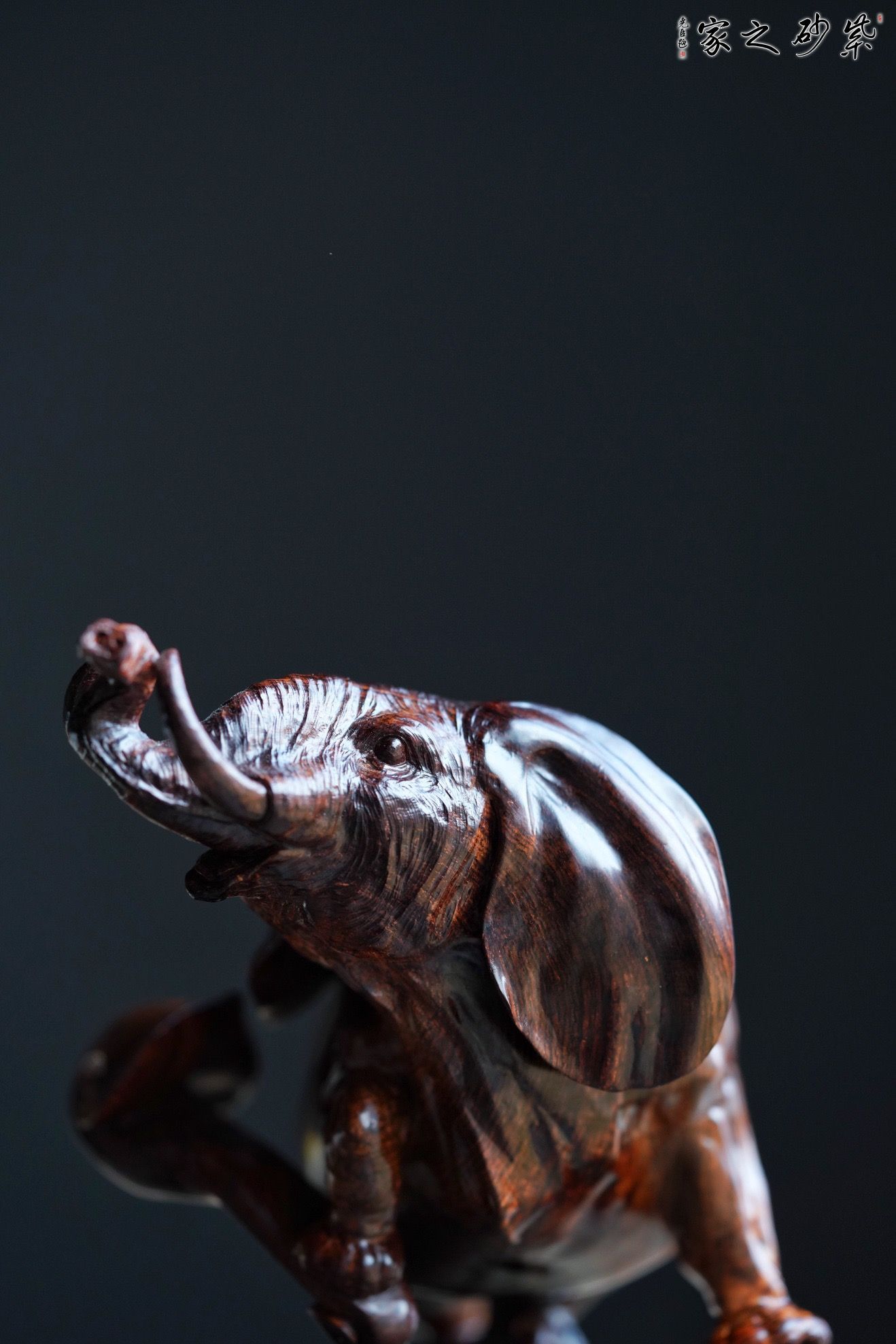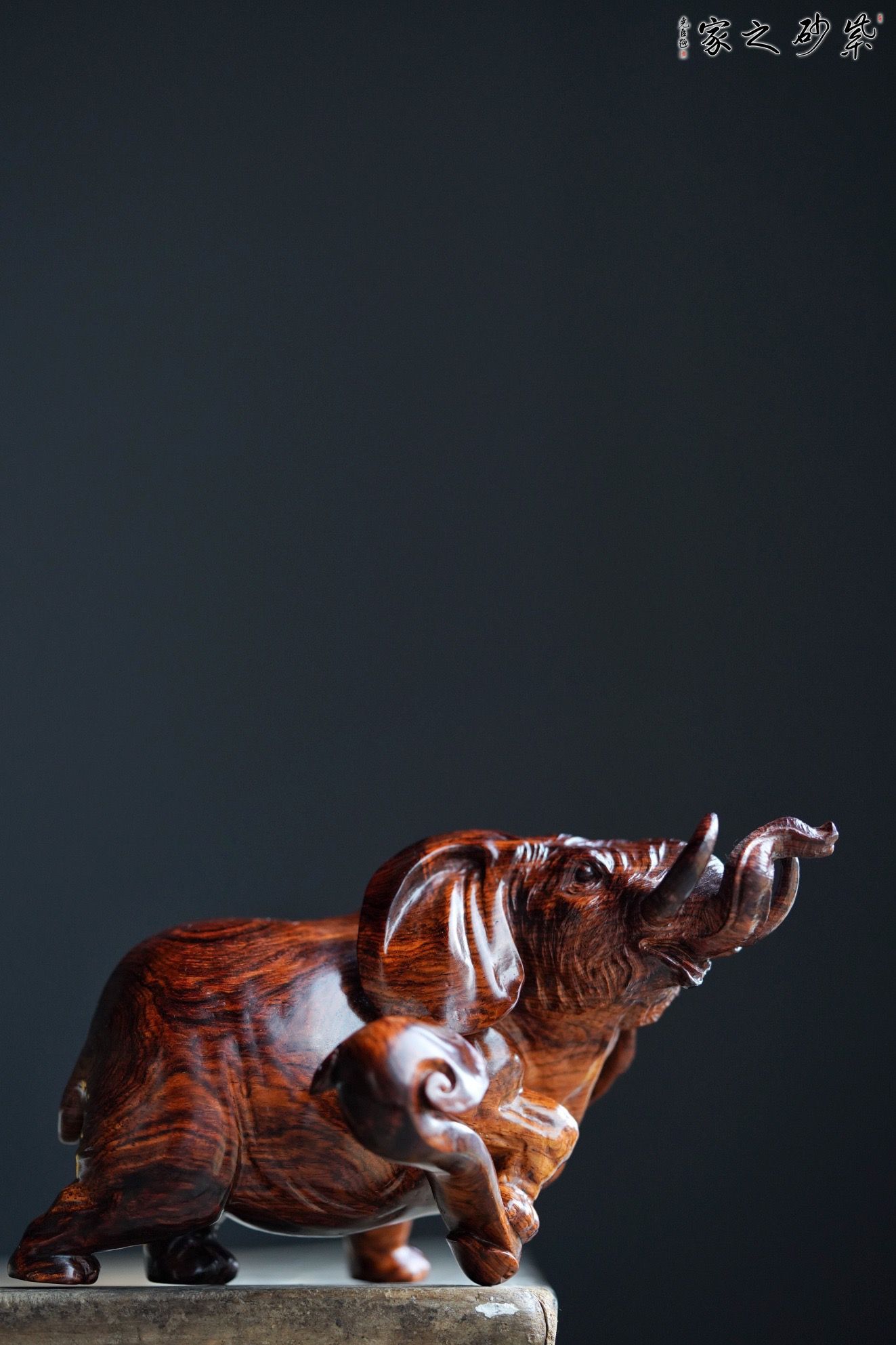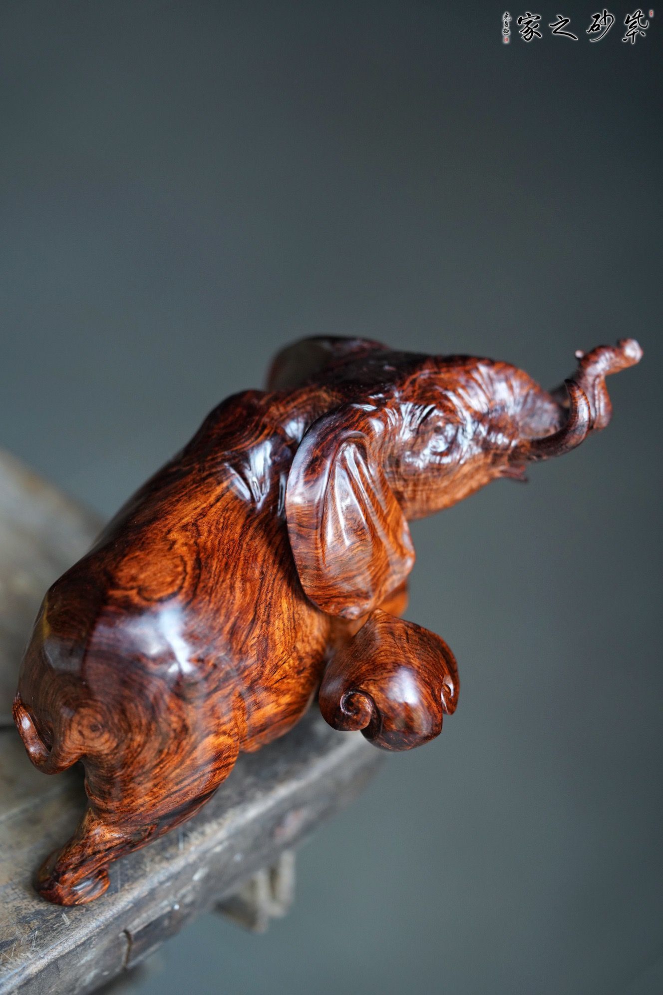 一木整雕,刀法圆融飘逸,吉象温厚稳重亦不失灵动,