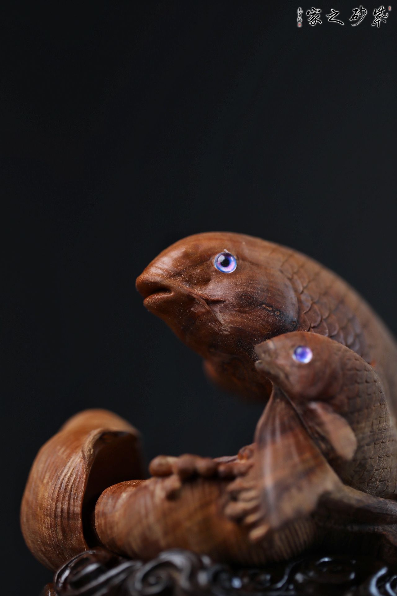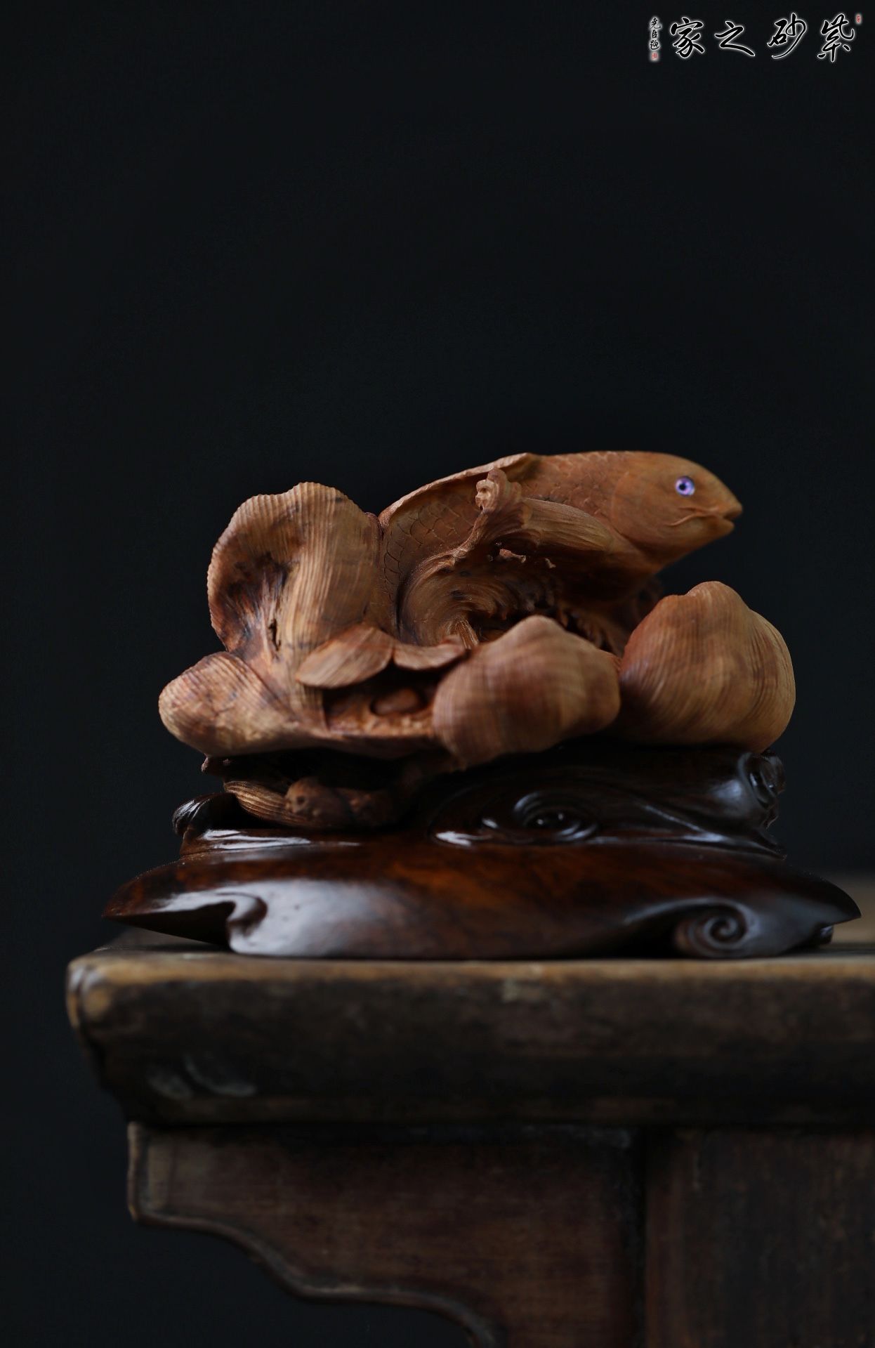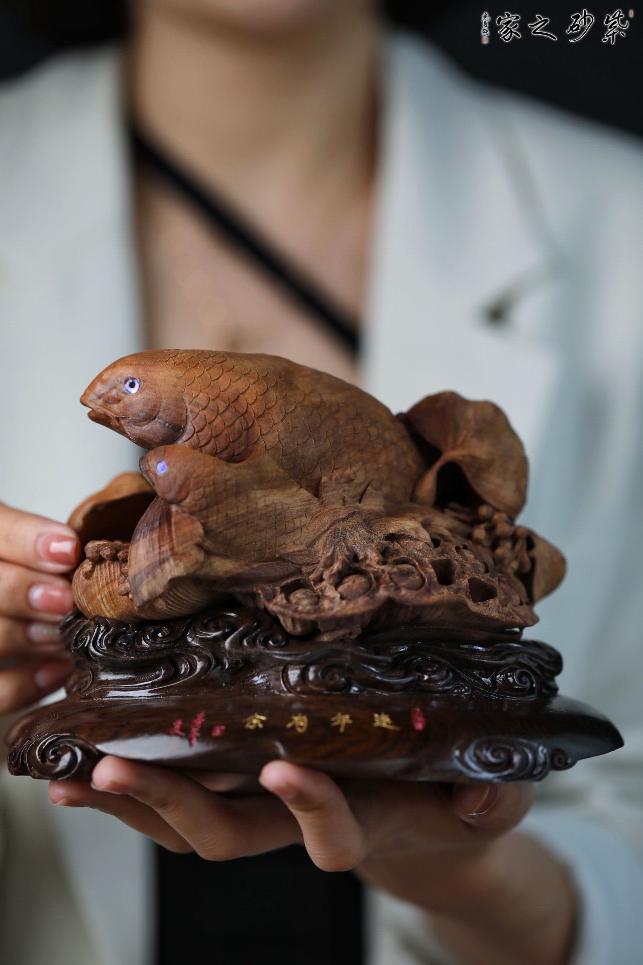 莲”是“连”的谐音,“鱼”是“余”的谐音,又年年有鱼.连年有余是称颂富裕祝贺之词。纯天然印度迈索尔老山檀香,造型独特,整料雕刻,雕工精湛,立体感强,味道好。