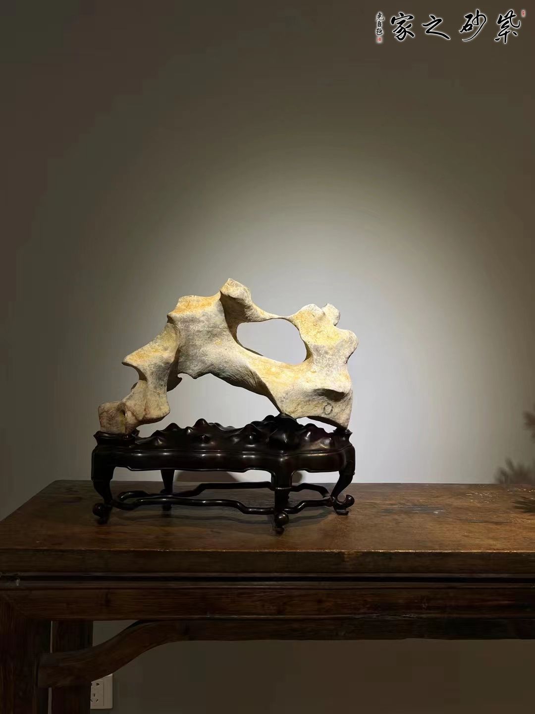太湖石原石,此石整体饱满,瘦透古雅,云窟穿凿,可资玩烟,质地温润,可资盘玩。原石天然,可置文房茶空间提点空间品味。