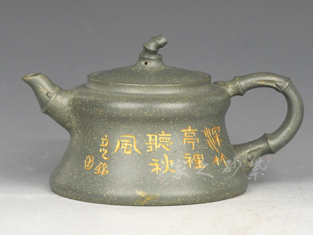 特点:块状中有青绿色的"鸡眼"、"猫眼"、色呈偏紫泛青,细而纯正, 十分稀少.烧成的壶呈现 红猪肝色,烧成颜色具体要看矿料的成分构成和烧成温度。