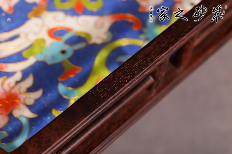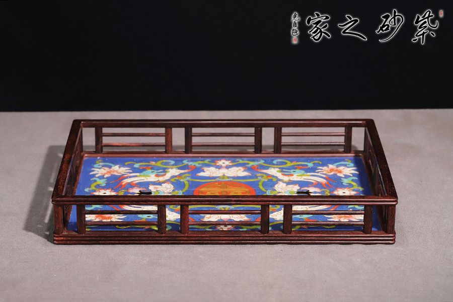 小叶紫檀嵌嵌思珐琅彩文承盘,别具风格 实用收纳摆放 38/26/5.5cm