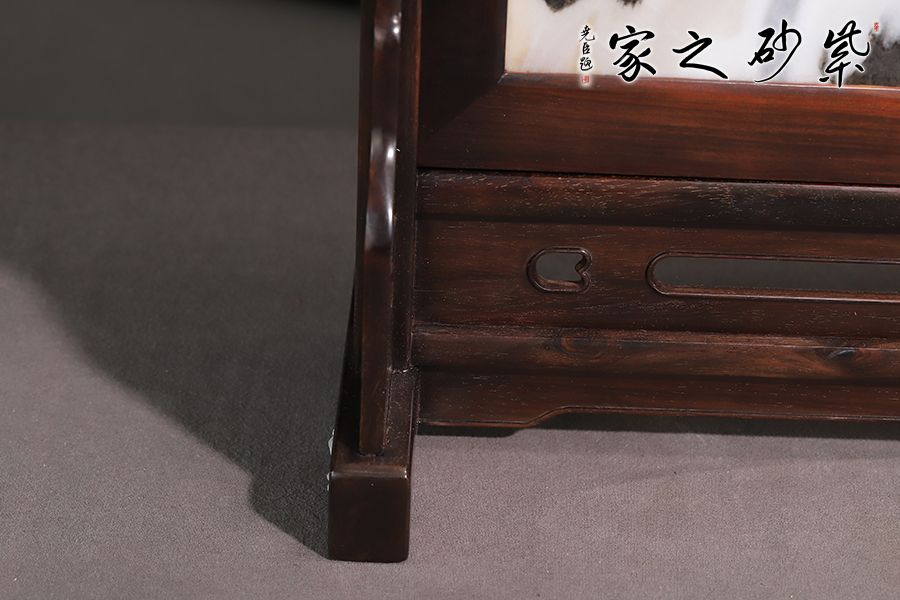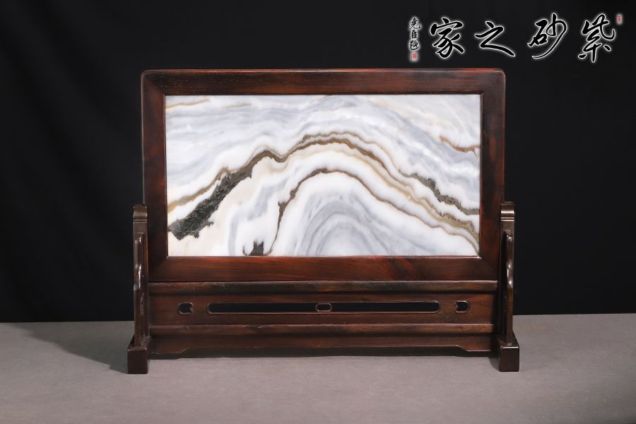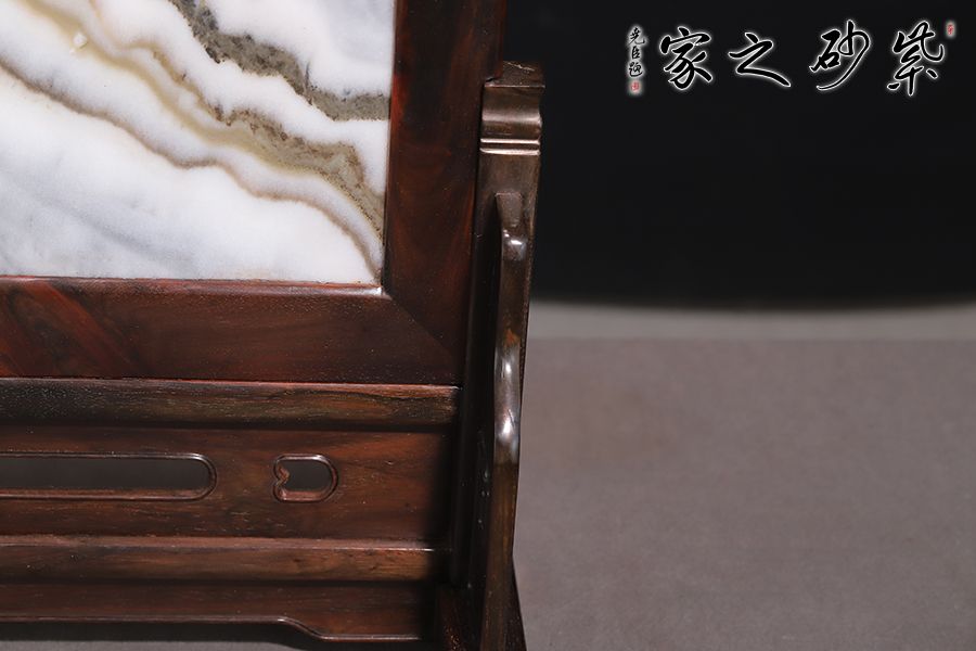 大红酸枝屏风嵌天然老矿云石 58/16/44cm