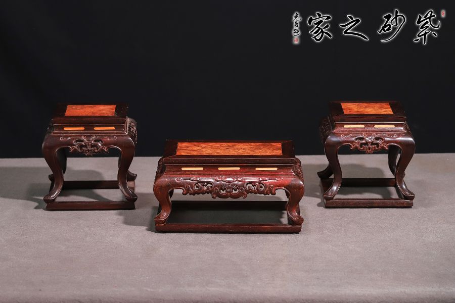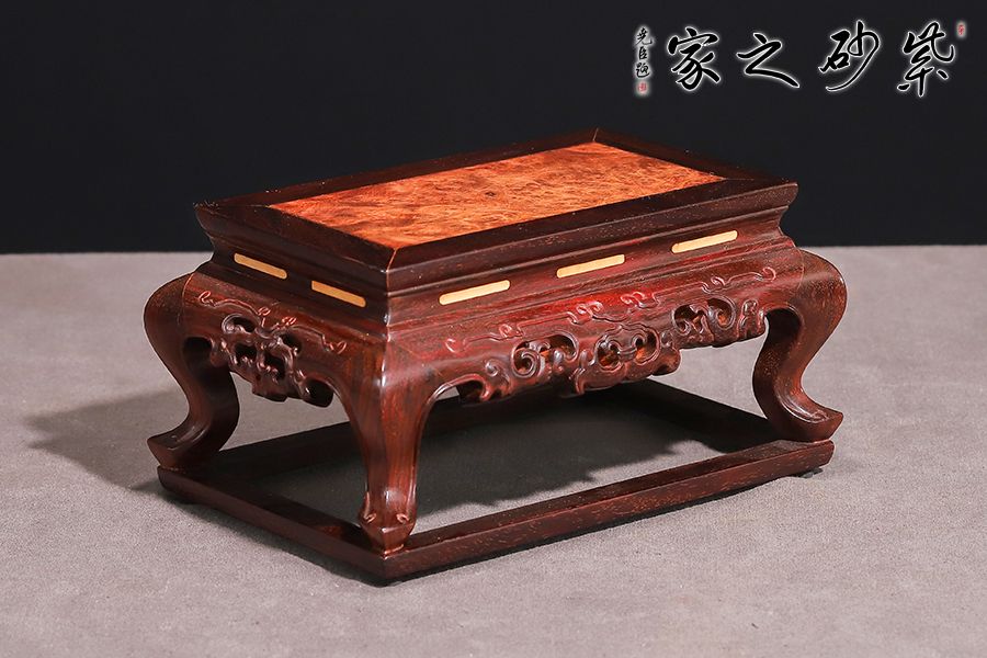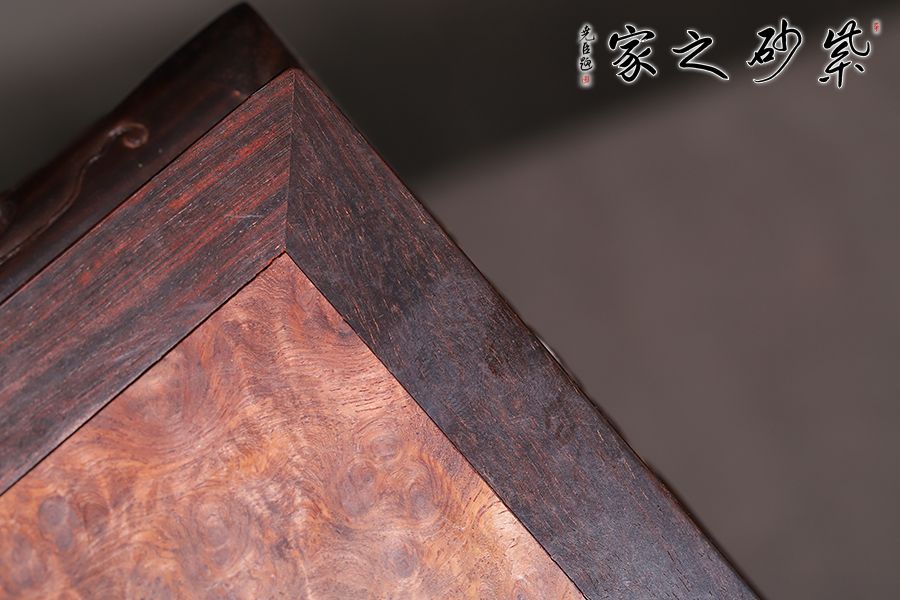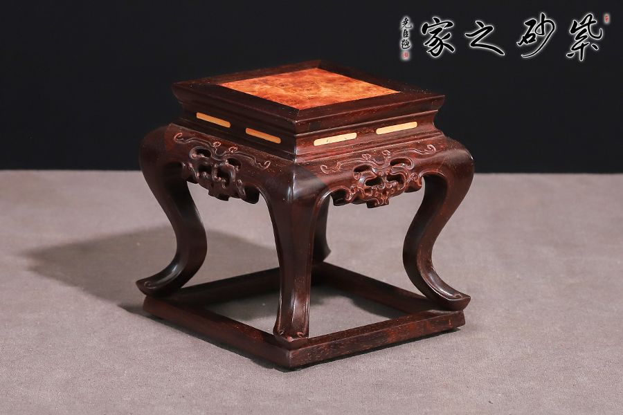 小叶紫檀镶嵌缅花满瘤疤木云牙方形底座 13/13/13.5cm 20/13.5/10