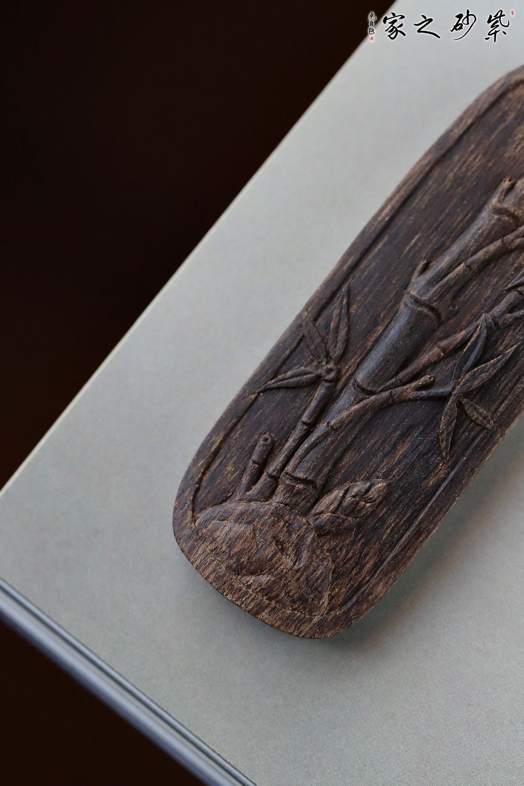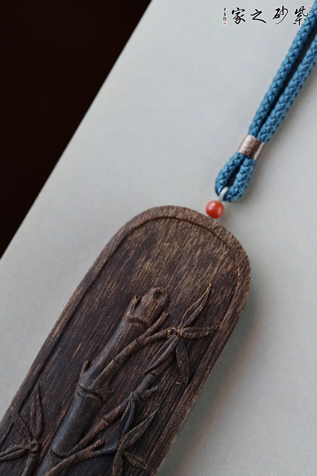 沉水,料形圆润厚实,甘甜中药清香萦绕,雕刻修竹节节高升,其形挺拔飘逸,气韵舒朗空静,佩戴清雅非常。