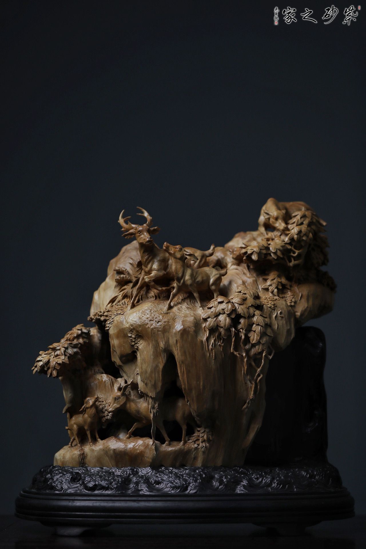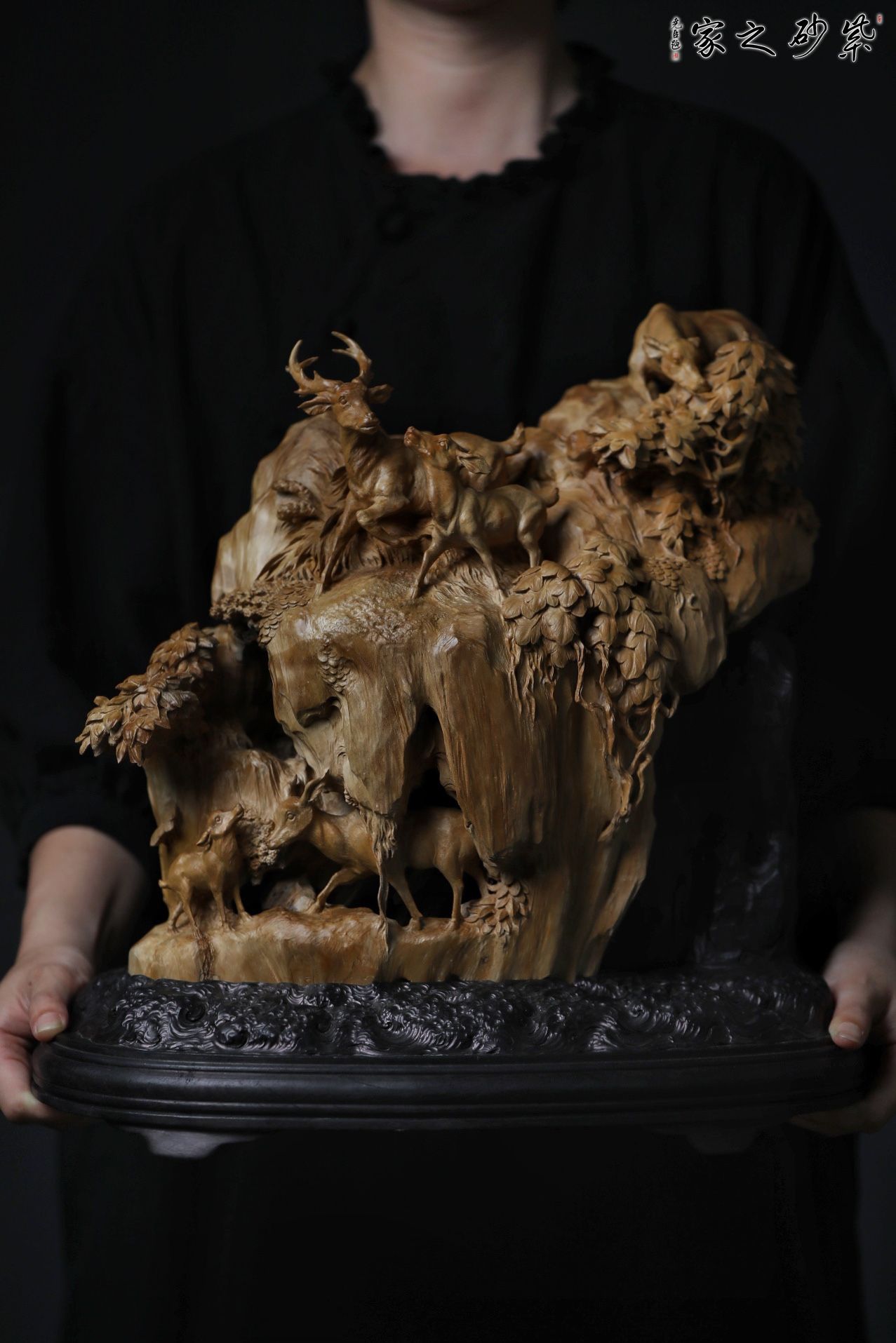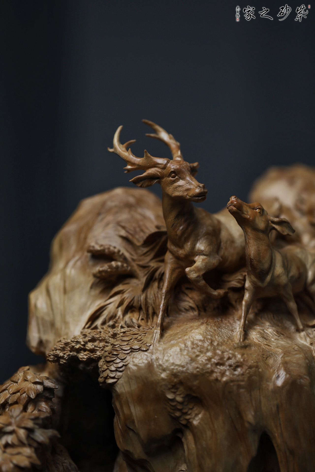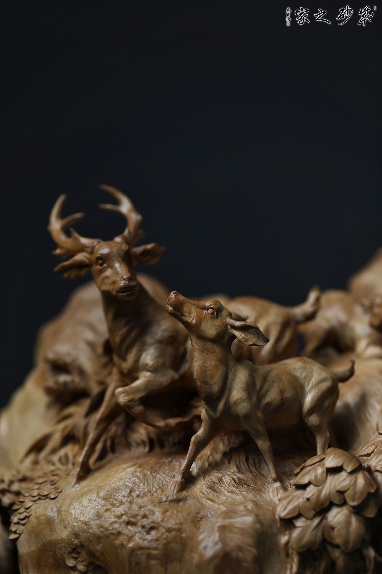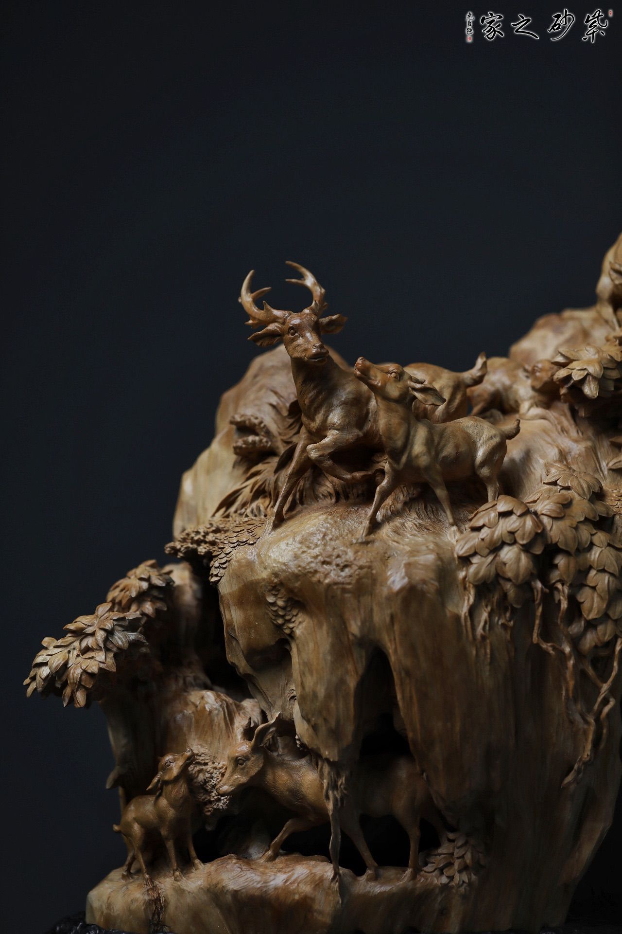 题材构思以小山树木为载体,鹿为主心,动静布局巧妙结合,寓意青山绿水和谐欢乐的美好生活~