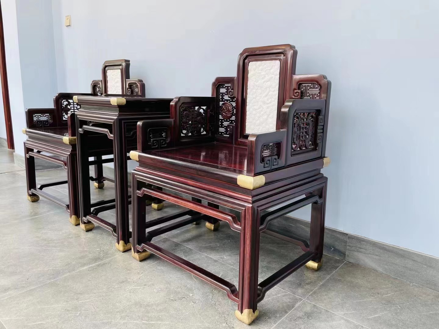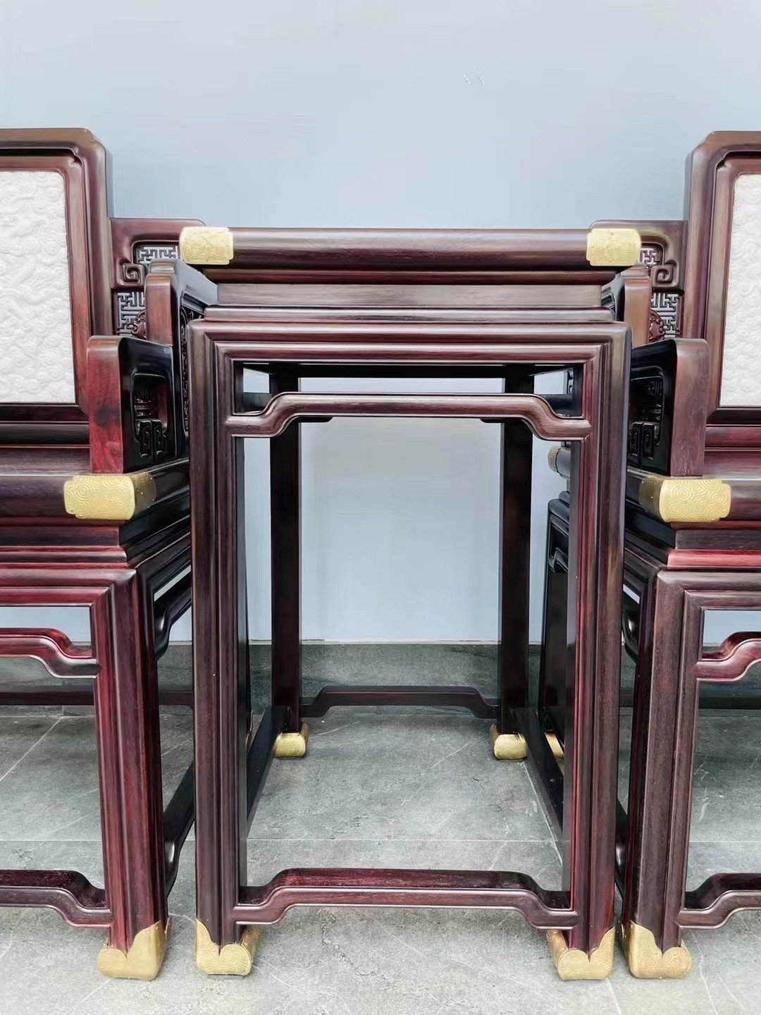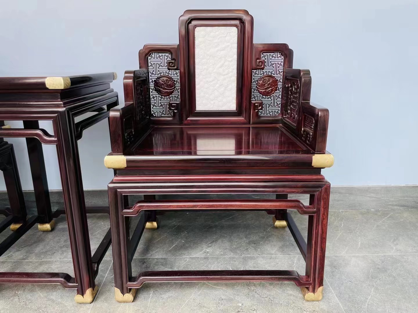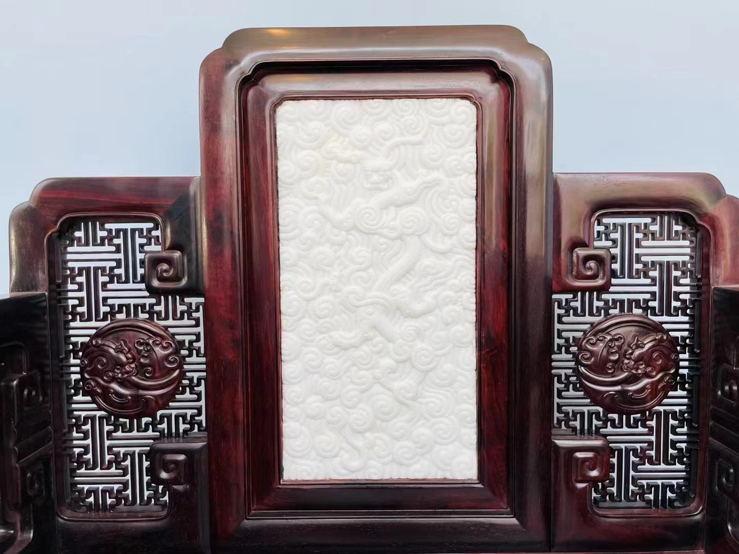 印度小叶紫檀嵌汉白玉螭龙纹宝座