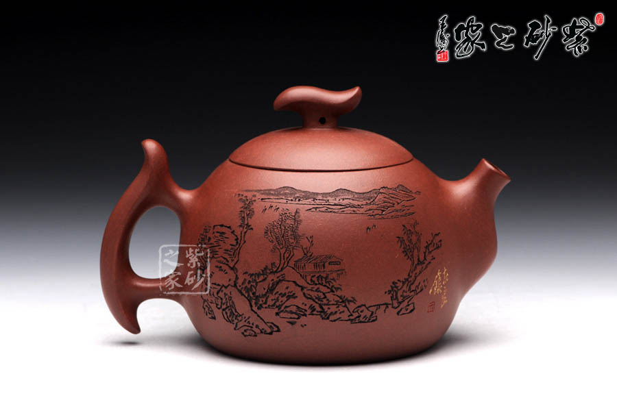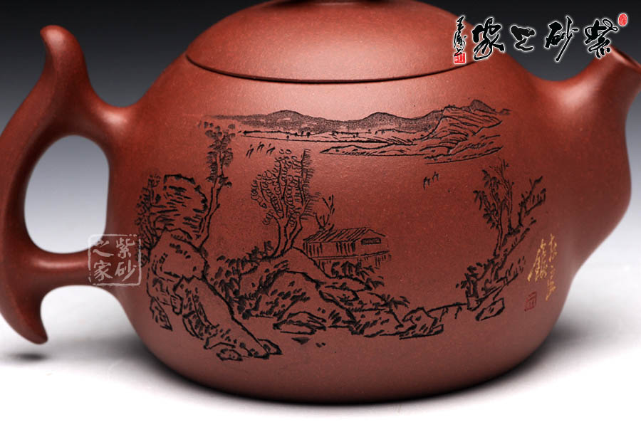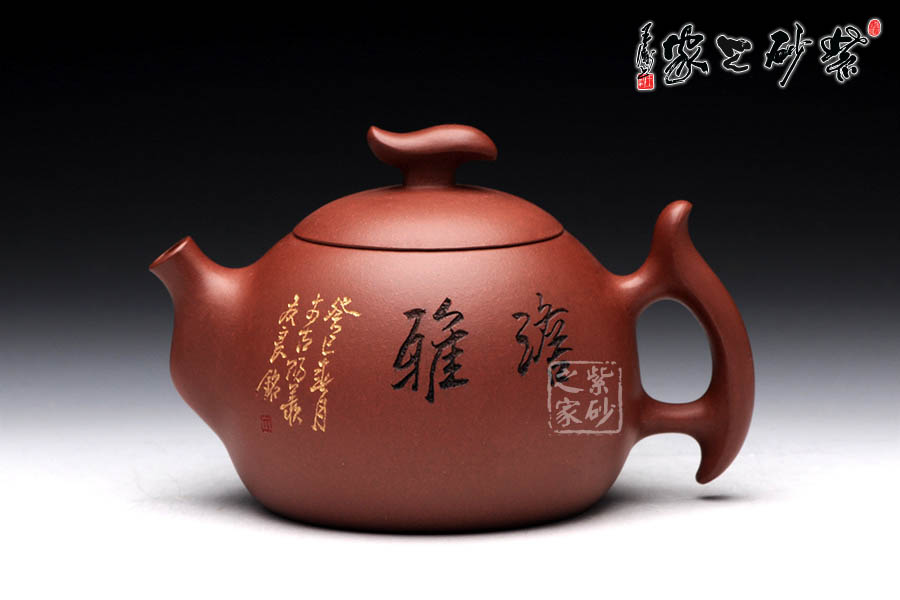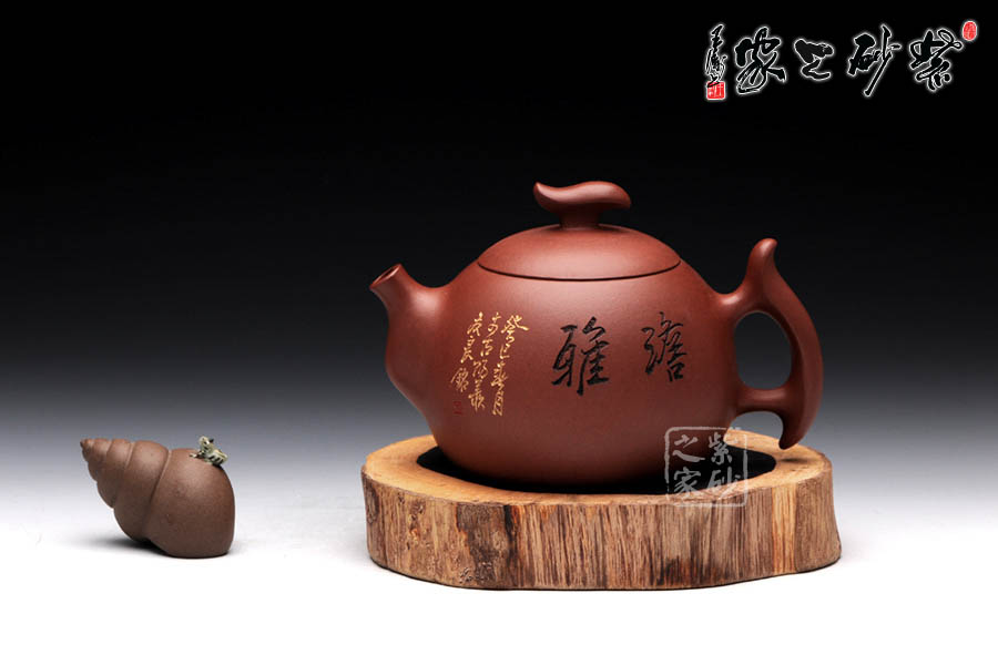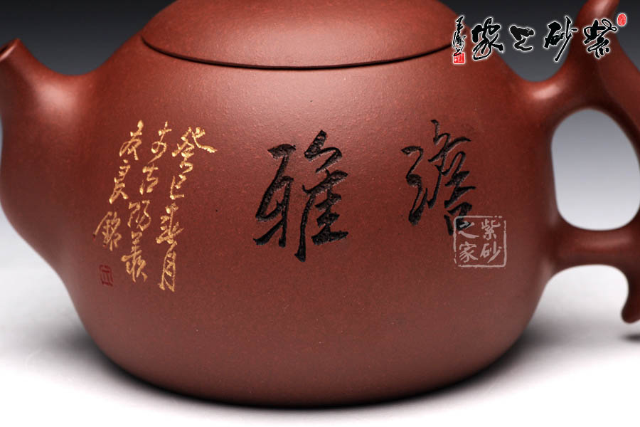 该壶精选原矿底槽清泥料制成,泥质醇厚,色泽古穆。此壶名为轻慢乾坤,气势赫然。壶身圆润饱满,如大珍珠一粒,美观雅致,壶嘴,壶钮和端把设计,新颖别 致,三者统一观之,仿若乾坤之形,浩然气度皆在其中。该壶采用刻绘装饰工艺,正面刻绘了“淡雅”两字,字体古雅浑厚,大气凛然,更是道出了此壶意韵。壶反面刻绘了一幅诗意满满的山水画,青山绿水,和风瓦舍,近景亲切,远景渺渺,情趣盎然 。该壶,是实用和把玩的佳品。
