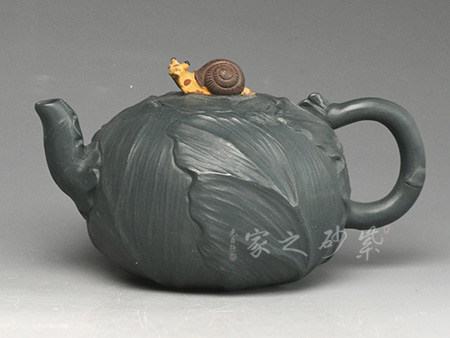 特点:块状中有青绿色的"鸡眼"、"猫眼"、色呈偏紫泛青,细而纯正, 十分稀少.烧成的壶呈现 红猪肝色,烧成颜色具体要看矿料的成分构成和烧成温度。