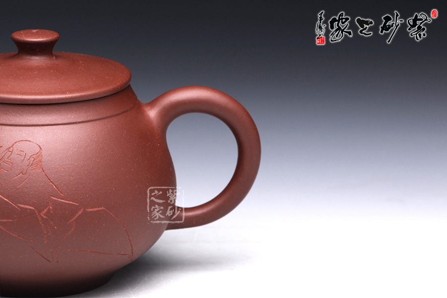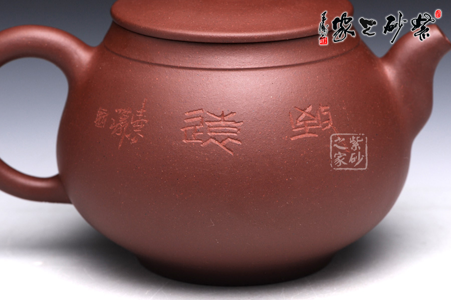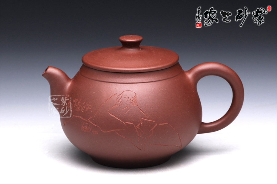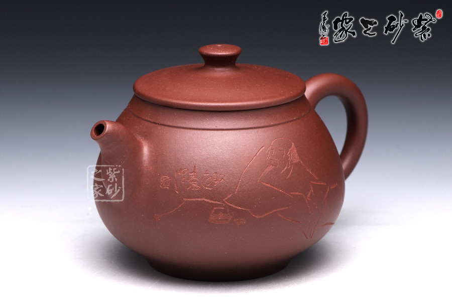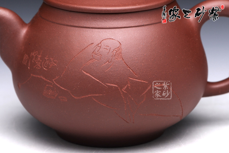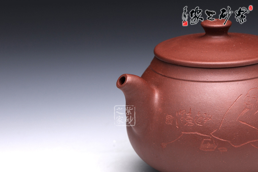 精选原矿底槽清泥料制成的此壶,泥质醇厚,色泽古穆。该壶壶体高挺,上敛下丰,壶身线条流畅自然,整个款器形,壶韵古朴平和。壶钮若圆柱,精致小巧。平盖设计,盖面平整,完美贴合,气密性良好。壶嘴短短,呈现三弯流之势,蜿蜒向上,浑厚可爱,和俊俏有力的壶把形成鲜明的对比。此壶正面刻绘了一位居士,坐卧自若,神情自然,若有所思,意蕴深远。壶反面刻绘的是“致远”两个大字,文化气息浓厚,且意境高远。