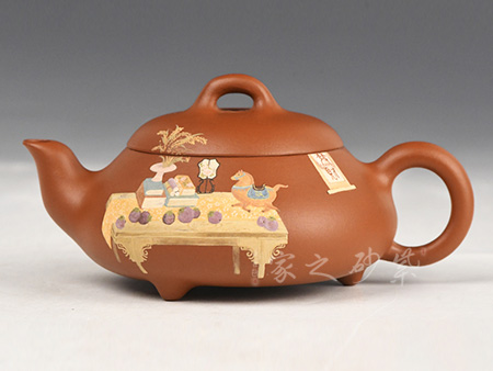 特点:週身密佈粗犷颗粒,形成十分特殊风格;红润又具 砂感,器身明显成双气孔结构,空气对流顺畅,别于一般陶器;质朴拙雅,美冠群伦,人气之佳历数百年而不衰。