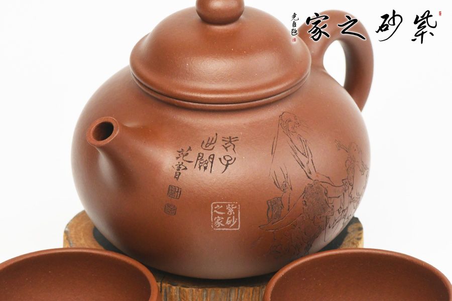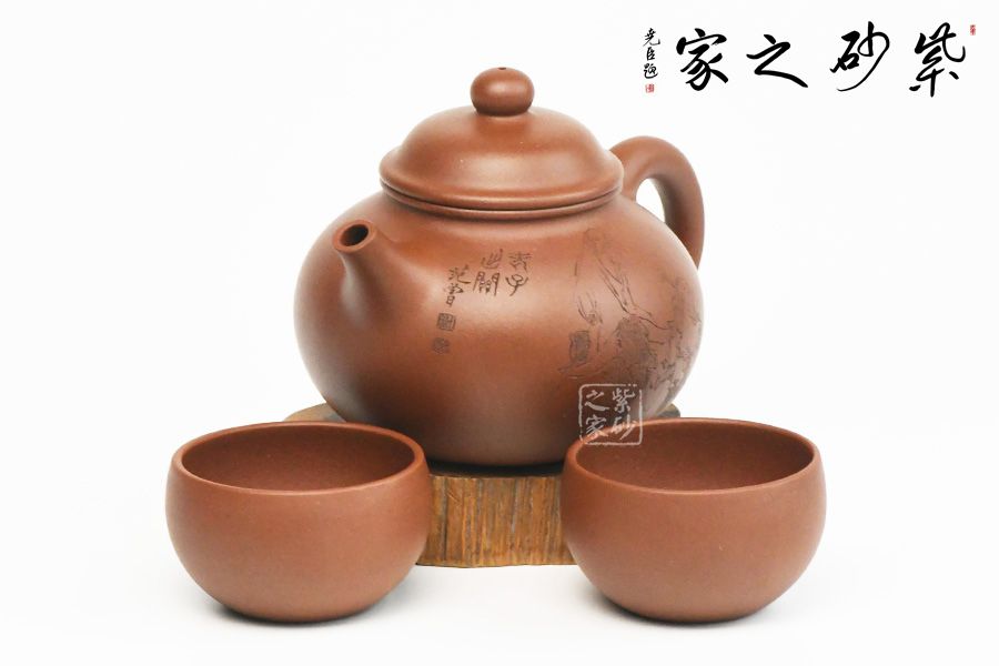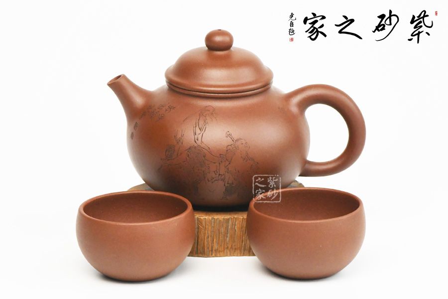 紫砂之家 >> 作品库 >> 作品详情 >> 容天套组(一壶两杯)范曾装饰