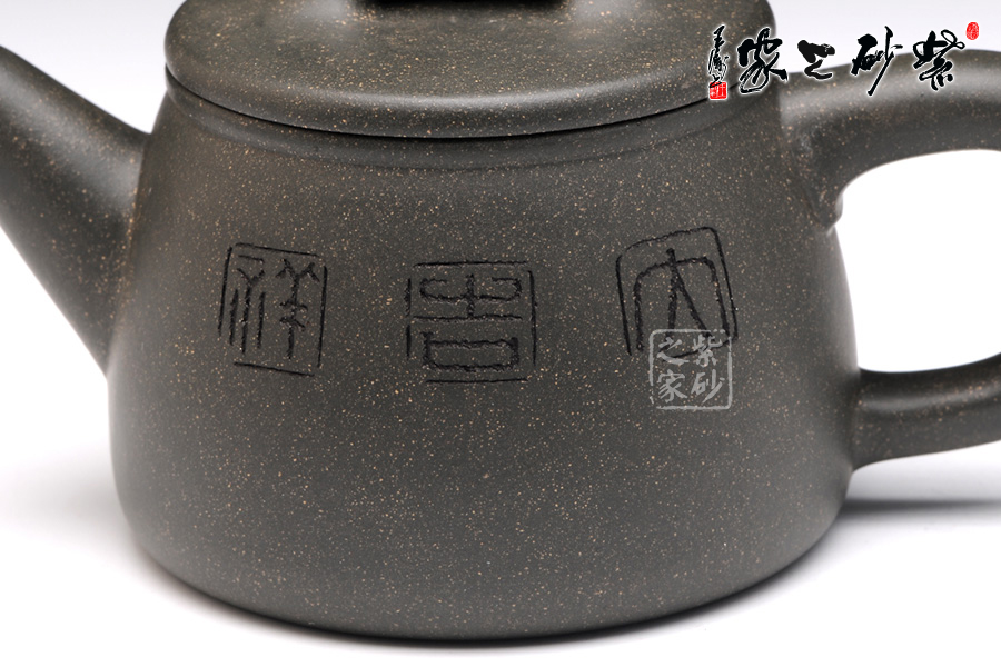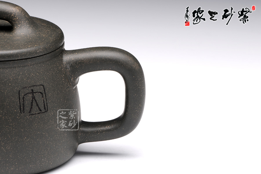 此壶外观厚重,给人一种苍凉之感。壶钮过桥,形状硕大宛若如意,大开大合,使整个壶盖与壶身紧密的连接在一起。壶嘴壶把与壶钮有其曲同工之处,都显得大气有力,明接的手法,更是展现一种低调又不失韵味的感觉。整体稳重端厚,线条简洁。实用性与观赏性相辅相成,为难得一见的佳品。