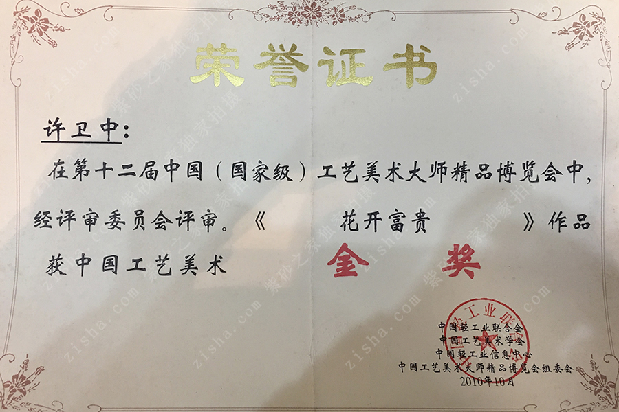 ▼ 2010年第十二届中国工艺美术大师精品博览会金奖!