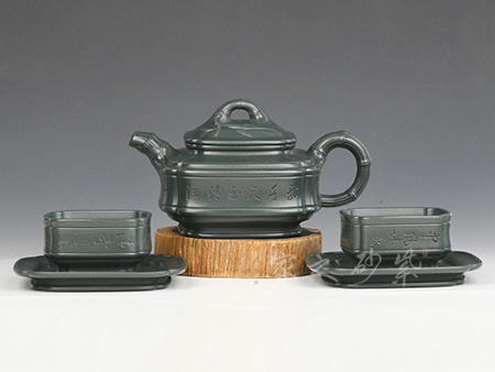 特点:块状中有青绿色的"鸡眼"、"猫眼"、色呈偏紫泛青,细而纯正, 十分稀少.烧成的壶呈现 红猪肝色,烧成颜色具体要看矿料的成分构成和烧成温度。