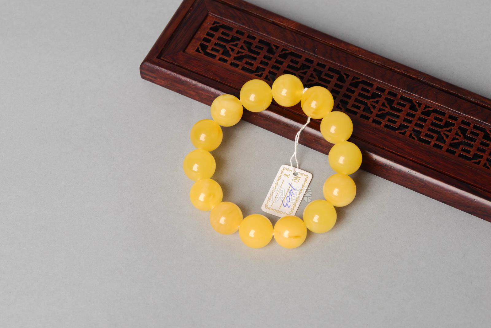 鸡油黄14mm蜜蜡手串 [ 编号:47018 ]
