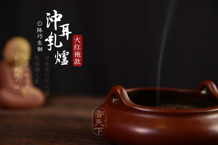 大红袍冲耳乳足炉 宣德彝谱款 [ 编号:64458 ]