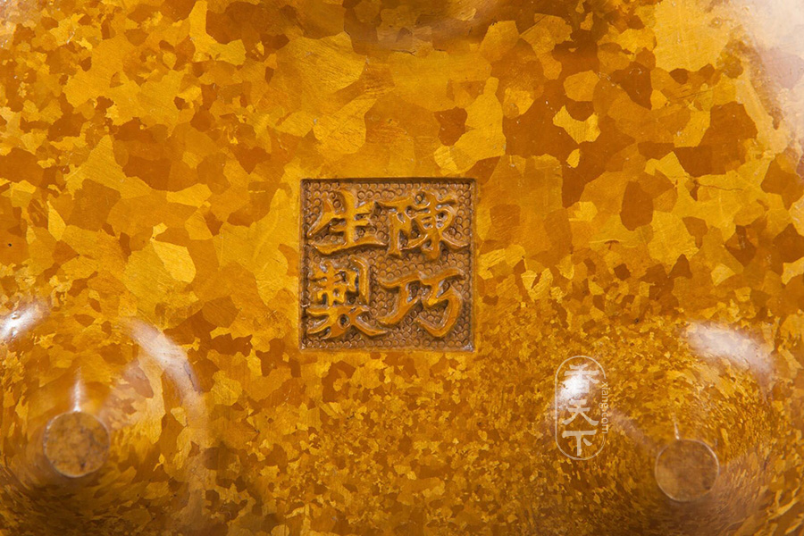 陈巧生制珍品桥耳炉。桥耳炉,又称凤眼炉,以其双耳形矮细长,似丹凤之眼,故名之。宣德皇帝将之下赐工部尚书和国子监,炉形取意博士讲经,士人经围拱桥聆听;桥含媒介,寓意授业解惑,通达如桥。后世官商人士甚喜之。宣炉以简为美,此款桥耳器形简洁,线条流畅,雪花金皮色,色泽诱人手感沉稳光滑。典型明式风格,精光内敛,珠光外现,扁腹圆口。底承三足,线条明快。入手沉重,皮色莹润,外展柔腻。适合厅堂书房,可掌玩心悦 ,可几上茗香,可厅堂美器,并作为吉祥之礼器广为使用,皆为佳品。