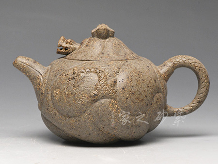 中国紫砂矿料中极为稀少的一种共融矿料,指的就是自然的红泥、绿泥、降坡泥、段泥、 紫泥等等,甚至更多不同品种的矿料蘊藏在同层面结构的共融矿。通过制作茶壶,把紫砂原矿的砂色美、厚重美、古朴美表现的淋漓尽致,所呈现的砂色效果,灿烂奇幻。
