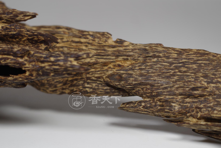 越南芽庄属于惠安系沉香,气味凉中带甜,穿透力强,有淡淡水果香和花香,细细品闻,成丝状。作品为原材,虫漏居多,很脆,棱角分明,呈不可控形态。