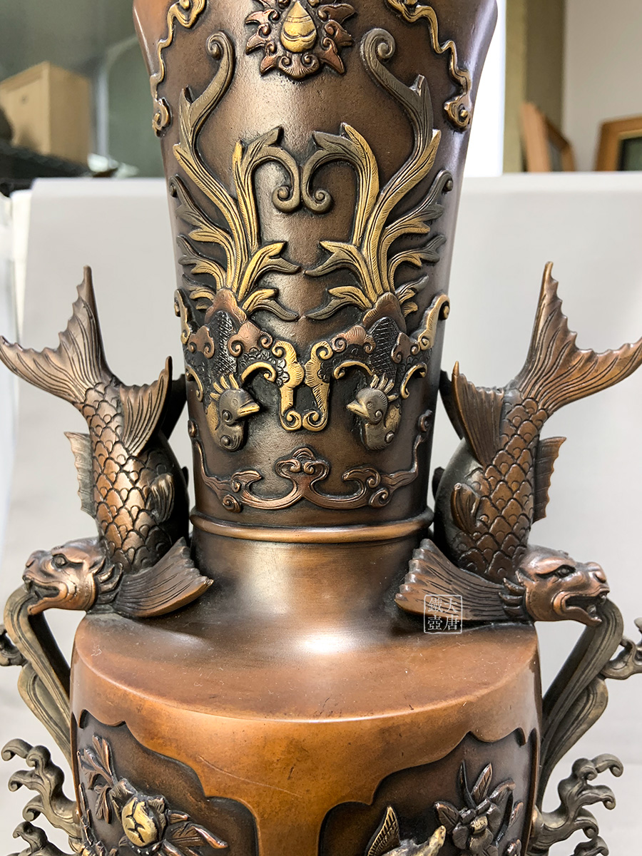 全身铜铸制而成,外加金银电镀,保存完好
