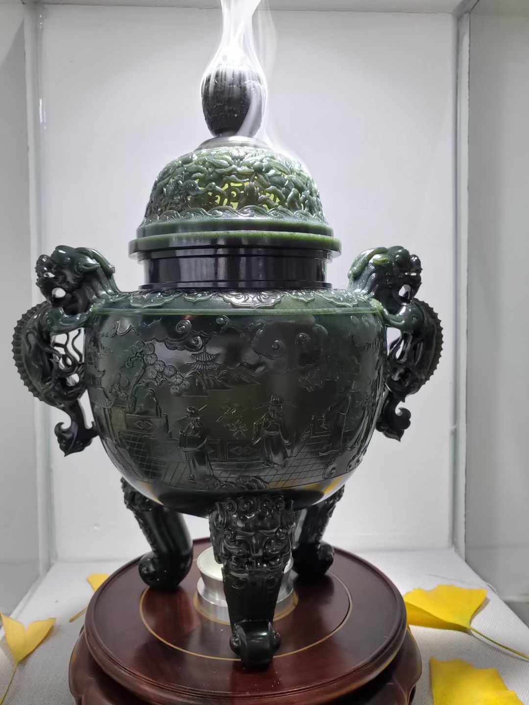 螭龙耳青玉香炉 [ 编号:98877 ]