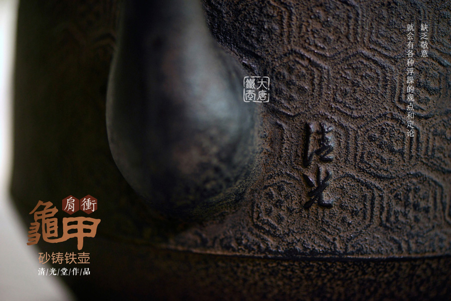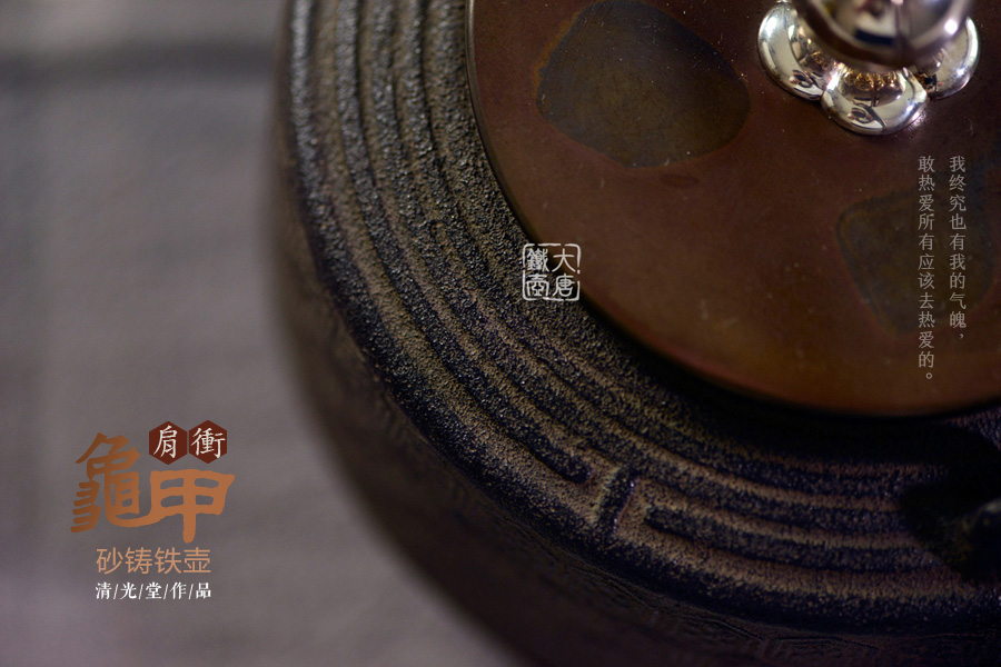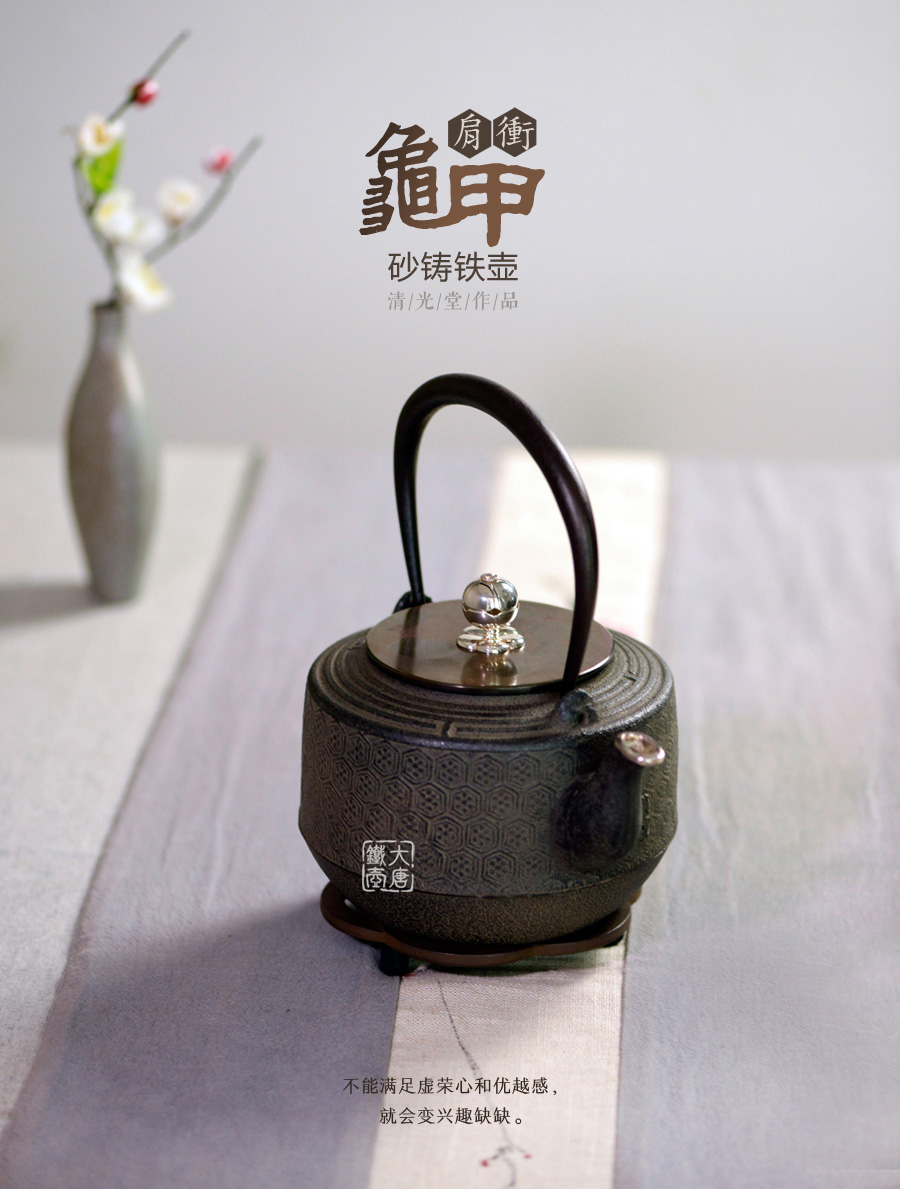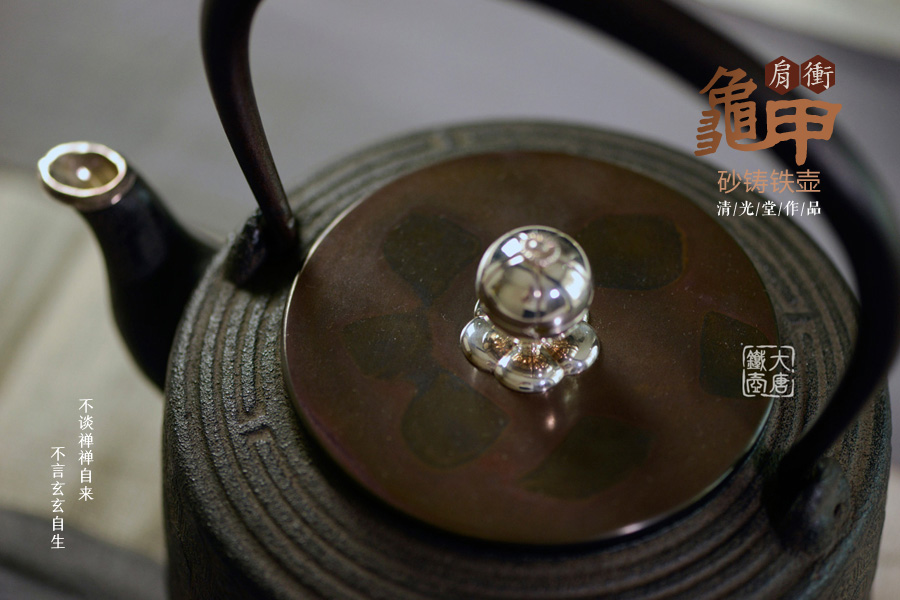 清光堂 肩衝龟甲砂铸铁壶(镶银) 作者:清光堂 / 编号:45731 / 材质:生铁,银 / 容量:1200cc