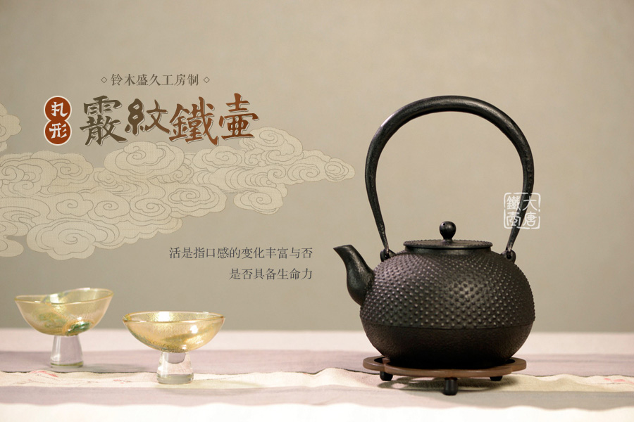 铃木盛久工房 丸形霰纹铁壶 作者:铃木盛久工房 / 编号:54577 / 材质:生铁 / 容量:950cc