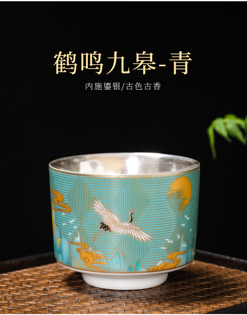 友鹤国风套杯(银)-蓝 [ 编号:106704 ]