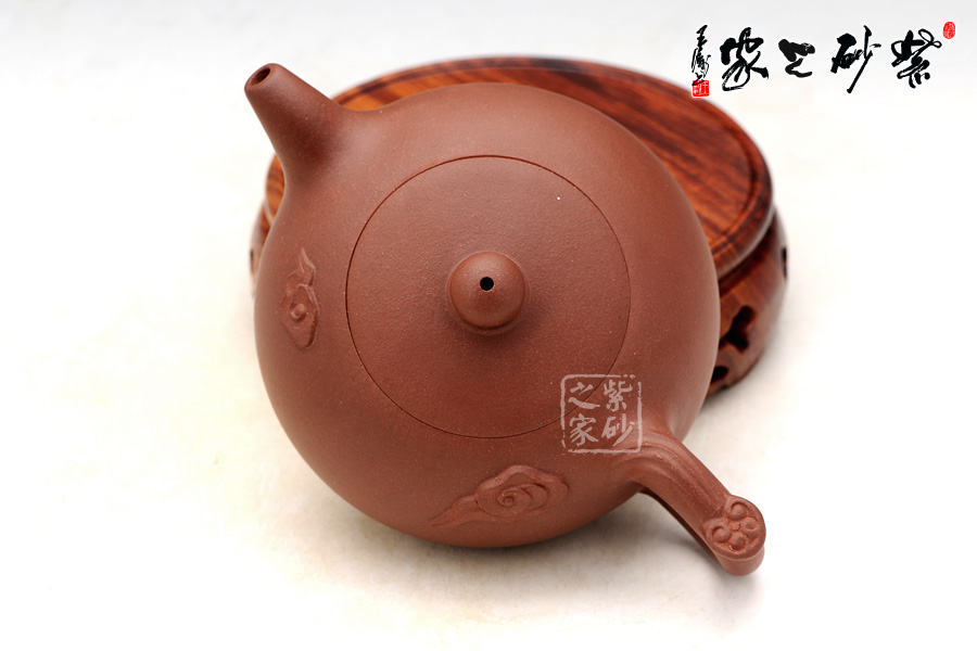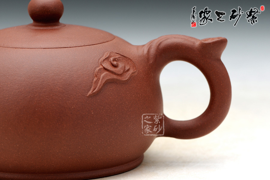 壶把之上饰以祥云如意,添加一丝动感