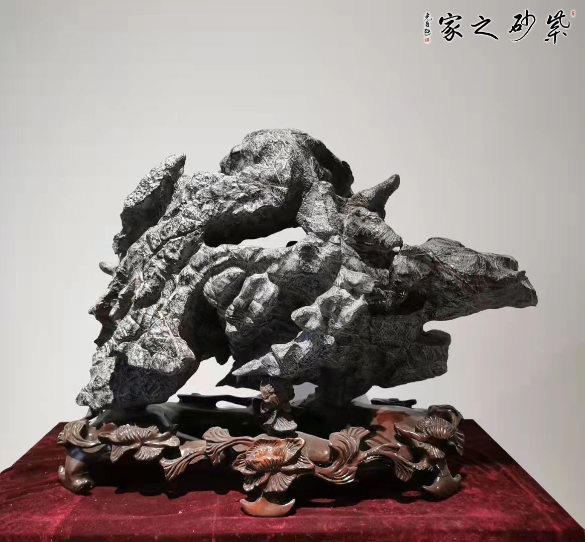 灵璧石原石,形似寿龟,质地上乘,体态皱漏透皆具,石表沟壑纵横,案摆靠山精品