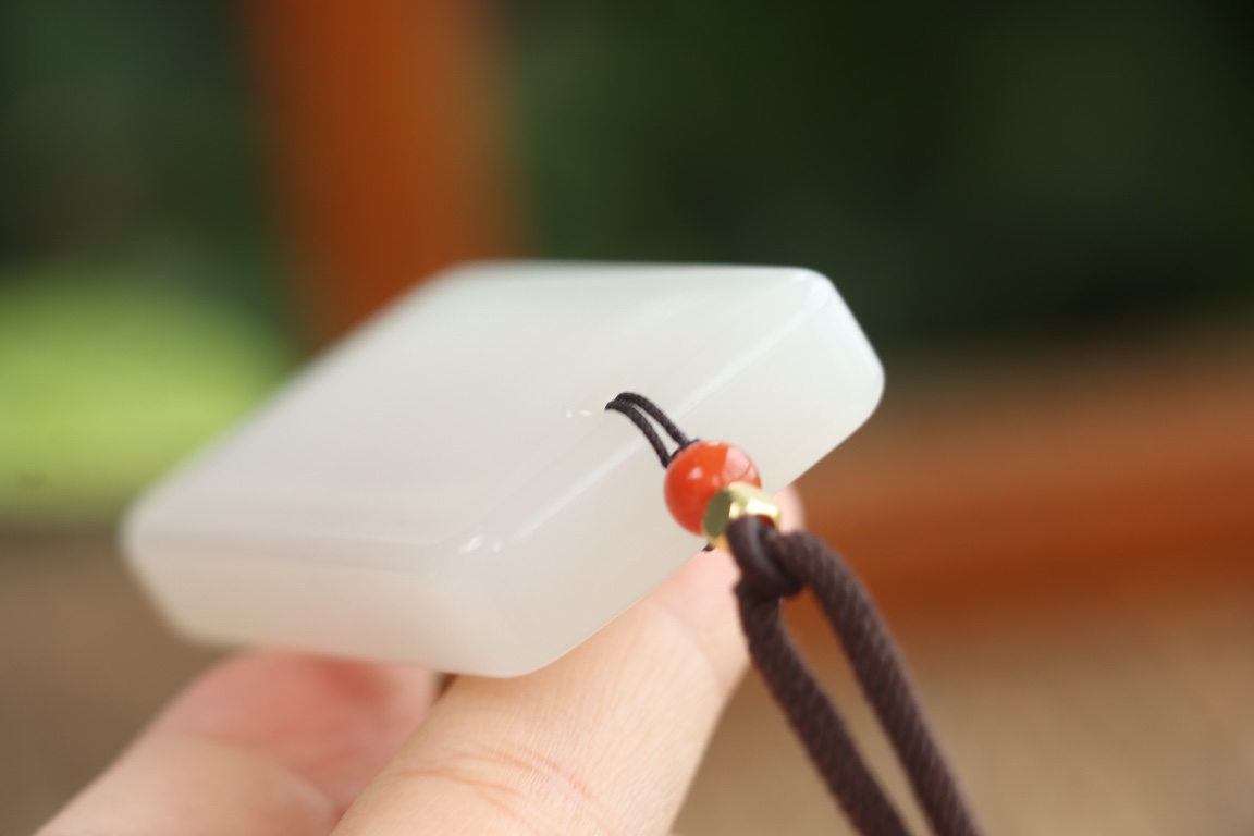 〈羊脂·平安无事牌〉 新疆和田玉羊脂级白玉无事牌 玉质温润 色泽均匀 冰润剔透 无黑无杂。手工打磨 牌面光洁平坦,不琢一物一字,取“平安无事,如意顺心”之意~ 规格:66.2/36/13.5重85.5