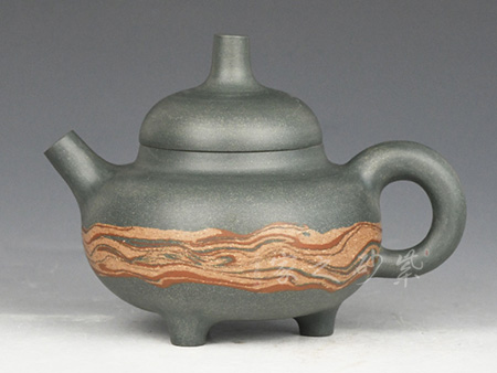特点:质感绵密、紧实细緻,持之扎实沉重、红润豔丽,泥中极品,无以伦比;泥胚含少许原矿颗粒,冲淋热水后色变极大,呈红中带紫,养壶易现“包浆”之美。