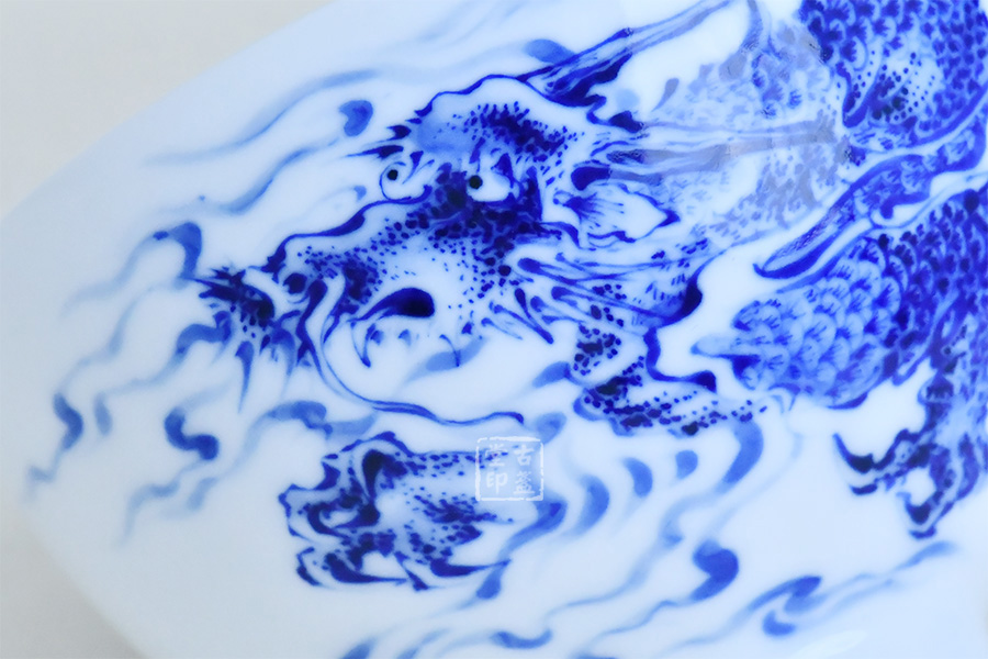 妙手青花:青花料分五色的画风,颜色清亮,层次分明。题材多以传统人物题材见长,画片选材传统、内容丰富、表情各不相同,画工精细传神、器形新颖,“白如玉、明如镜、薄如纸,声如磐”。