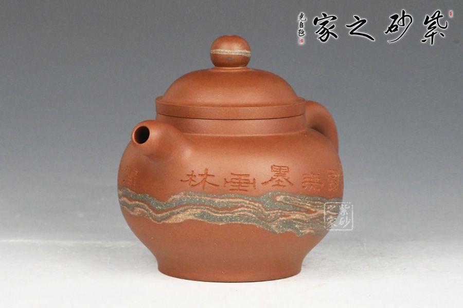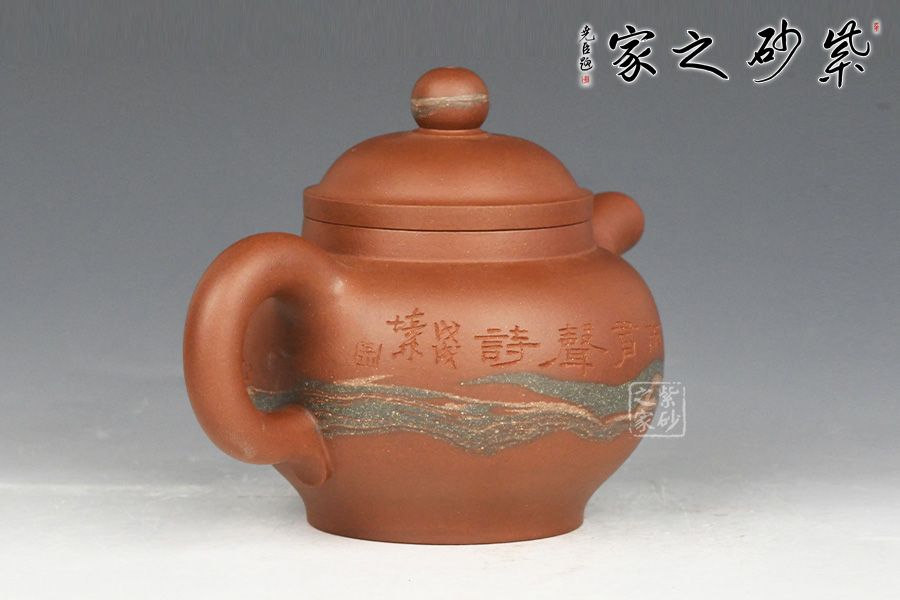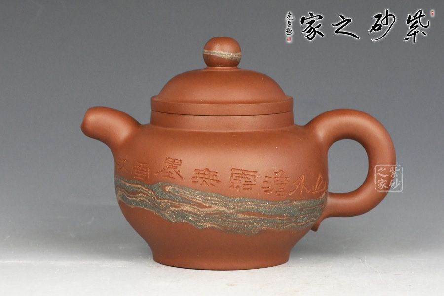 特点:块状中有青绿色的"鸡眼"、"猫眼"、色呈偏紫泛青,细而纯正, 十分稀少.烧成的壶呈现 红猪肝色,烧成颜色具体要看矿料的成分构成和烧成温度。