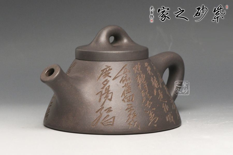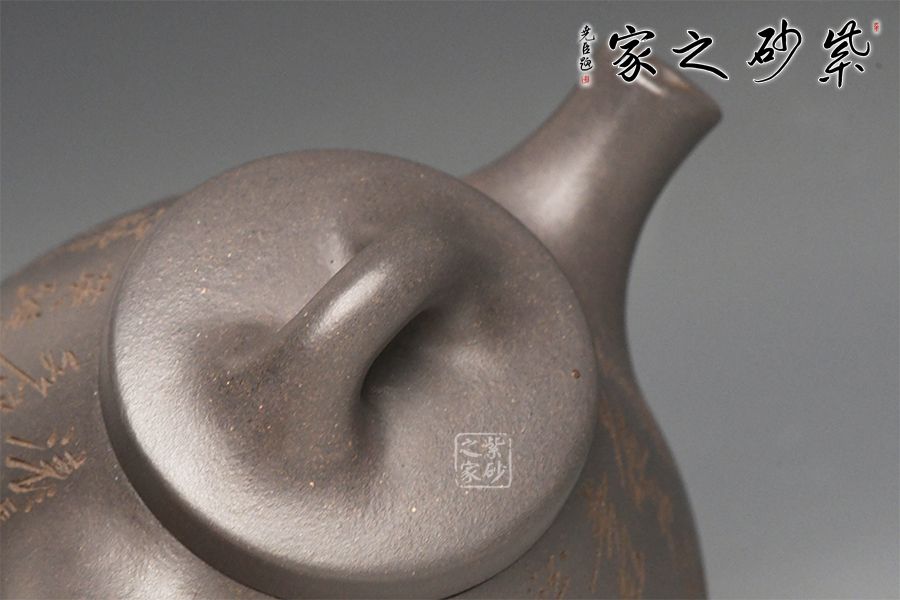 特点:双气孔结构明显,空气对流顺畅,简朴古雅,老味十足,别具明代紫砂原料气韵。 砂感重而不刮毛,色泽如紫似灰,沉重扎实不妥协,似硬汉风格,十分易于辨识。