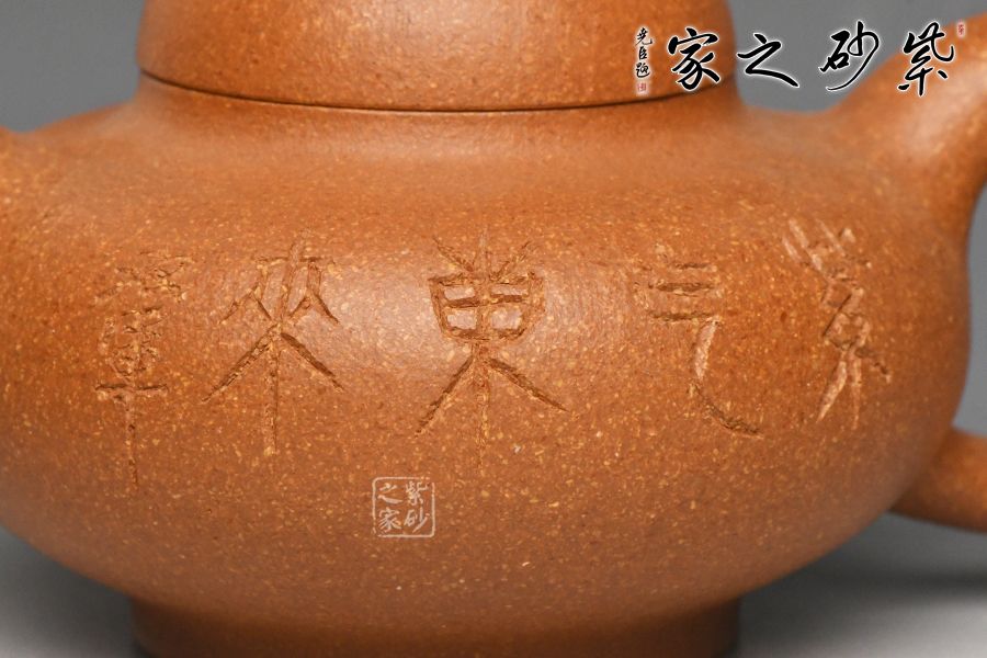 黄金砂,是以黄龙山的黄金段泥为胎,黄,红,白,黑,诸砂掩映,具有独特的帝王之色,此矿料蕴藏量极为稀少,珍贵,容易泡养,包浆莹润,宝光流动,帝王之气十足。
