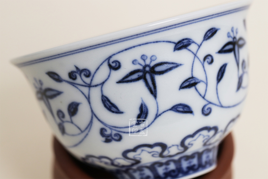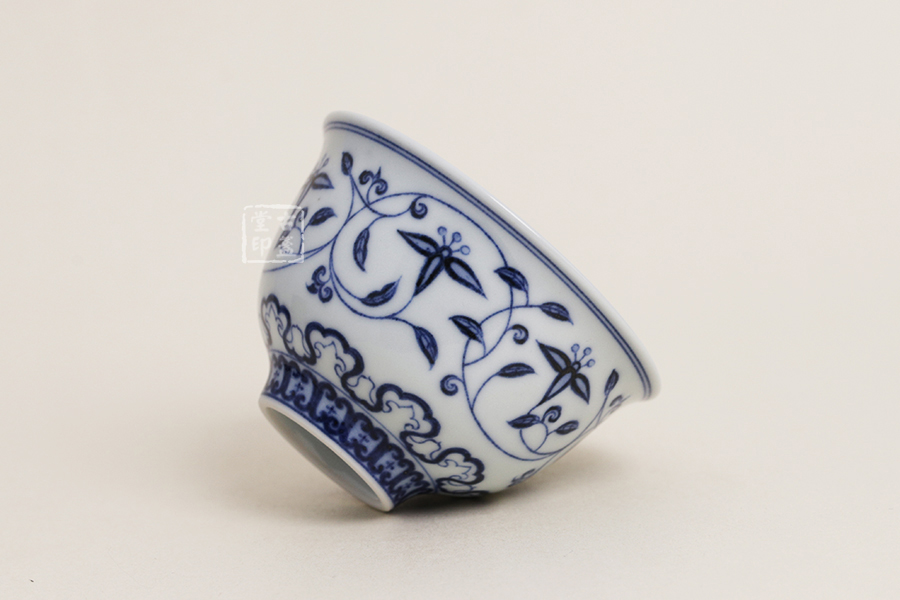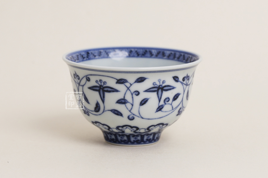 青花缠枝花卉灯盏杯 [ 编号:247655 ]