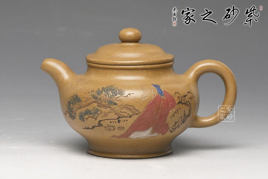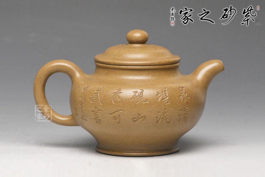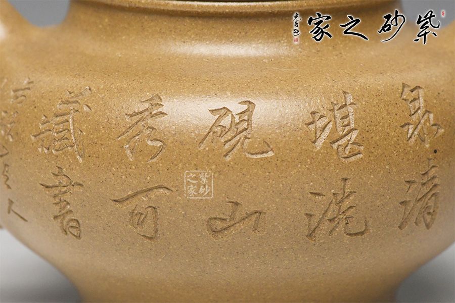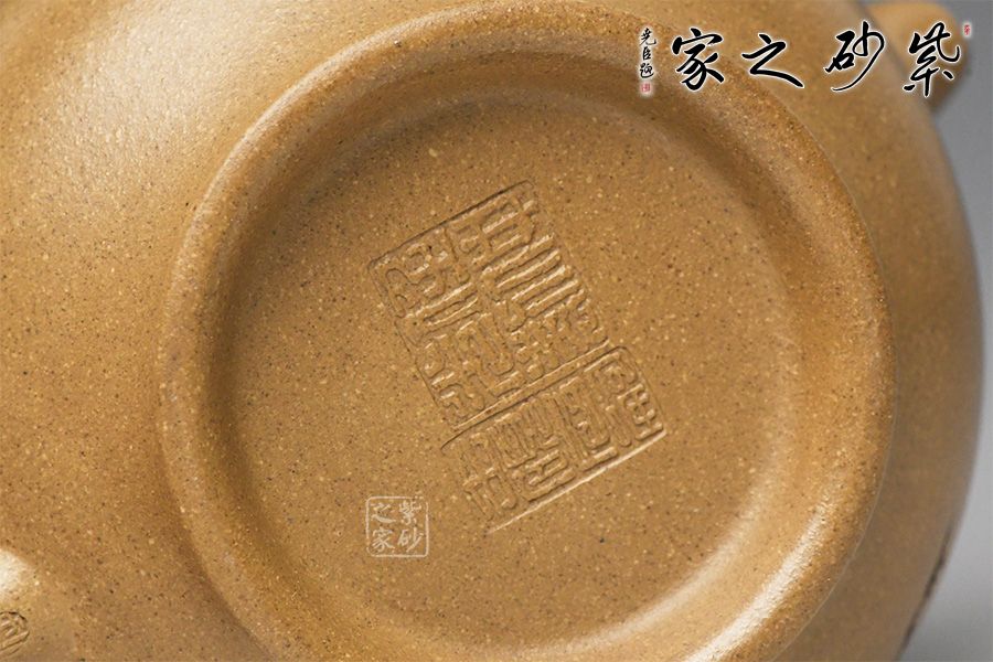泥性:感甜嫩绵密,质坚而温润,呈近田黄色调,为江苏宜兴赵庄山系朱泥矿~黄石黄之共生矿,经挑拣练製而成,因含铁量只达6%左右,致陶之后呈“金田黄色”。