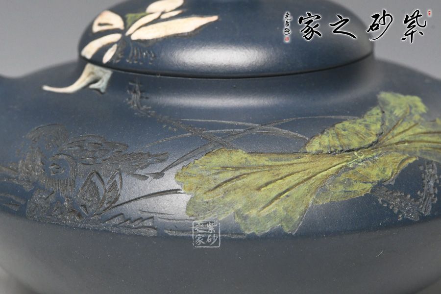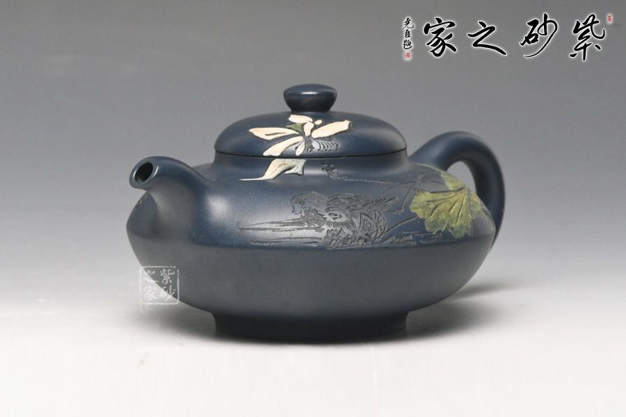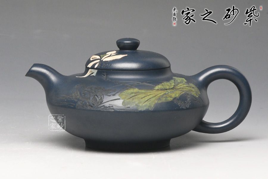 特点:泥色特异,青蓝色中略泛绿光,清秀独特;稍一泡养,色调更形稳实,温润透明,变化甚巨,玩赏深具成就感。