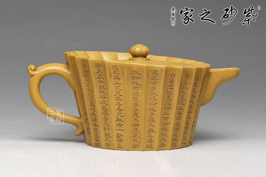 泥性:感甜嫩绵密,质坚而温润,呈近田黄色调,为江苏宜兴赵庄山系朱泥矿~黄石黄之共生矿,经挑拣练製而成,因含铁量只达6%左右,致陶之后呈“金田黄色”。