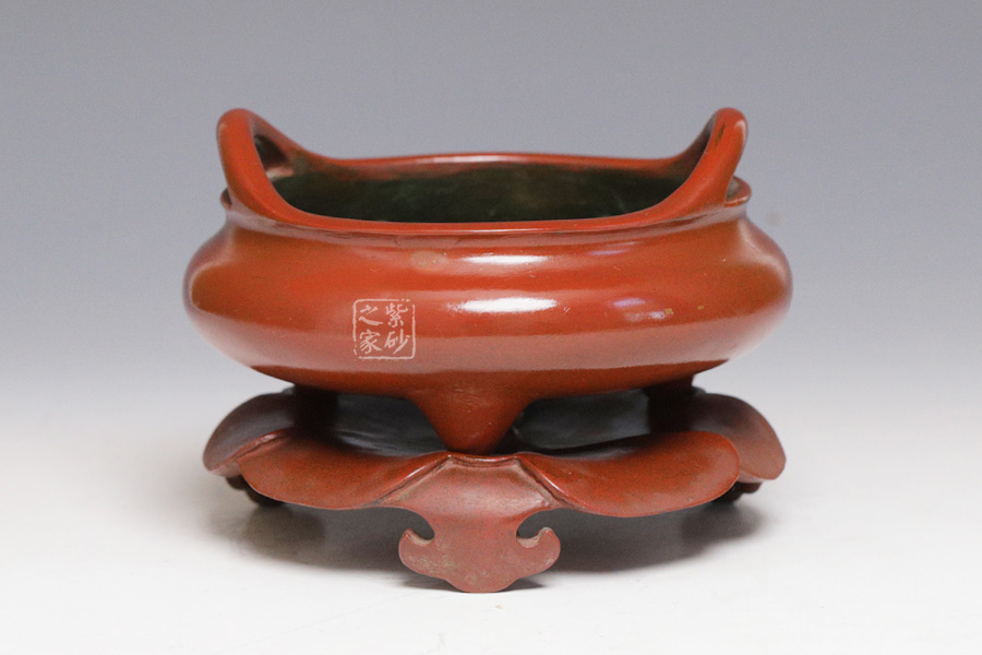 带座冲天耳三足乳炉(大红袍) [ 编号:249424 ]