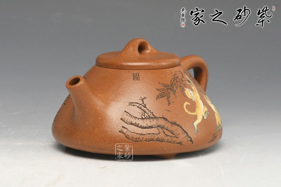 紫砂商城 >> 作品详情 >> 子冶石瓢 ·灵猴献瑞(李氏沉 香泥