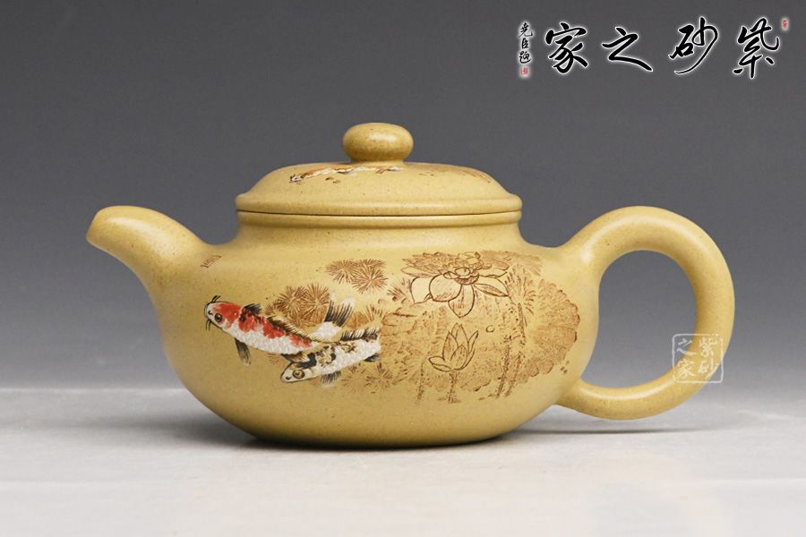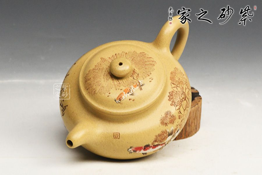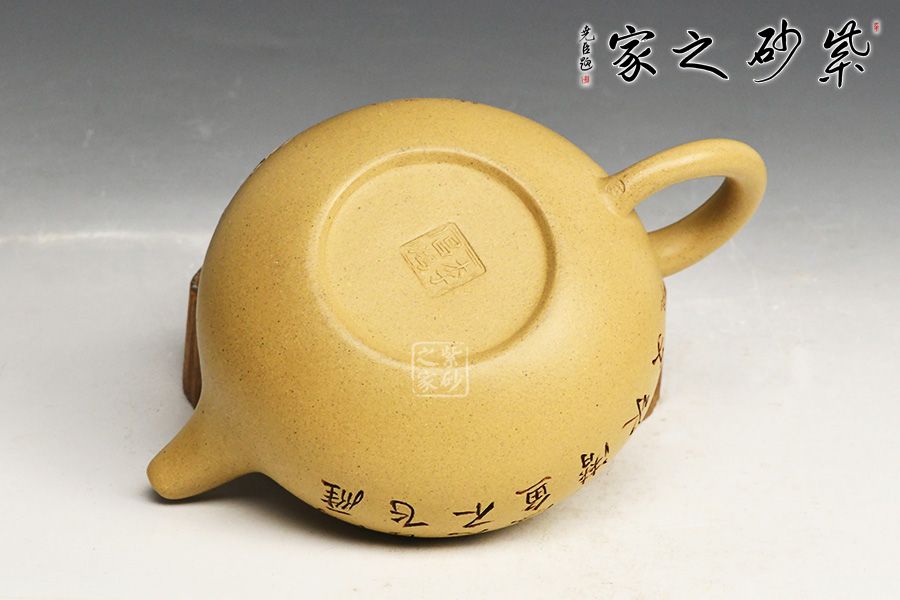 泥性:感甜嫩绵密,质坚而温润,呈近田黄色调,为江苏宜兴赵庄山系朱泥矿~黄石黄之共生矿,经挑拣练製而成,因含铁量只达6%左右,致陶之后呈“金田黄色”。