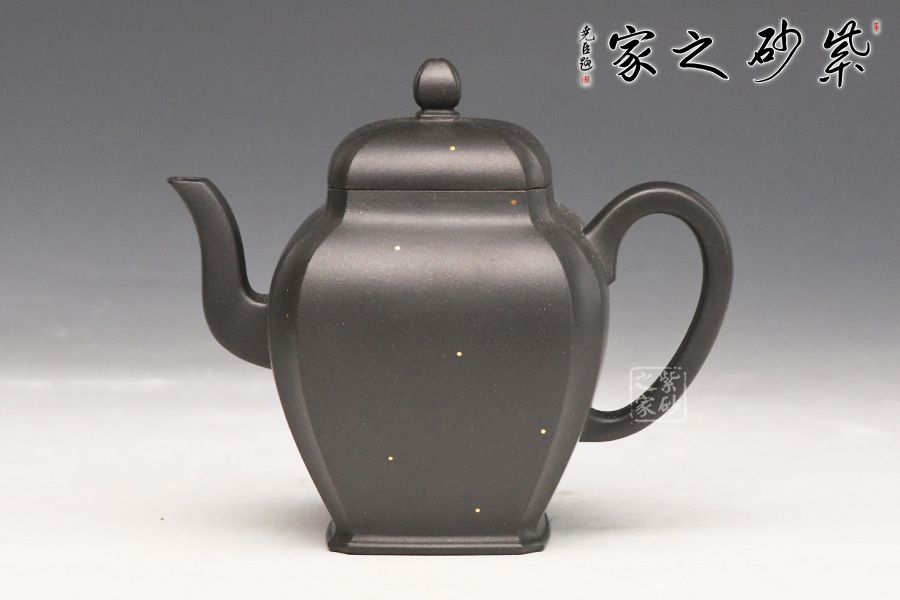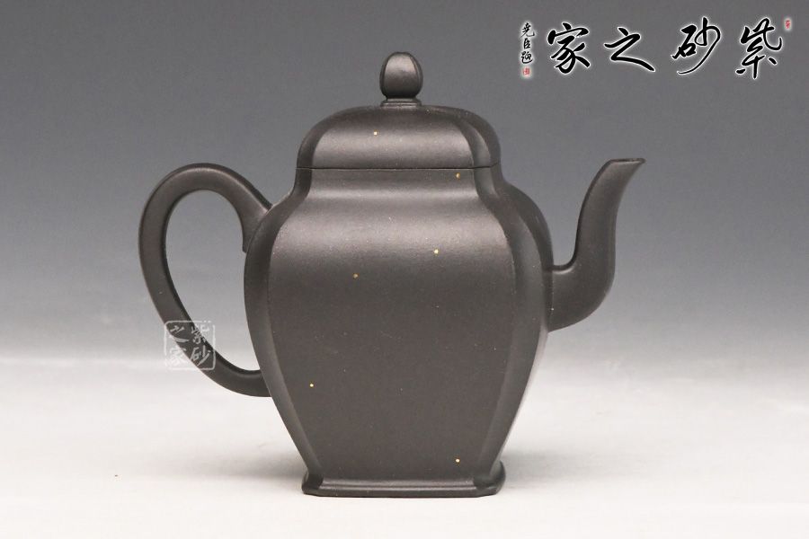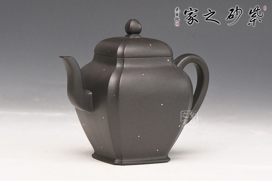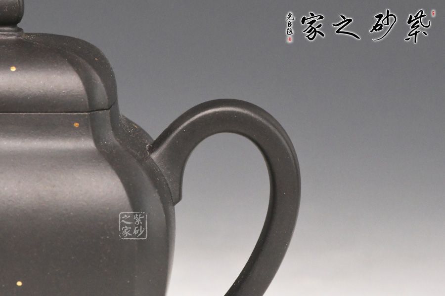 简介:黑泥,其色如墨,似黑夜浩瀚天际,深不可测,配以点点金砂,直如天星闪烁,高挂暗夜长空;神秘静寂、引人神往,故历来深受世人钟爱。为早期最常见通用之泥料之一,因矿脉里铁质成份较高,日久使用,深获早期壶识者深爱、赞赏。养壶者之最爱。新壶初用砂土气重,茶汤略现砂气,经使用壶身展现出灰黑,泡茶鋉数日则如墨黑,泡茶好喝,评价好赞不绝口!