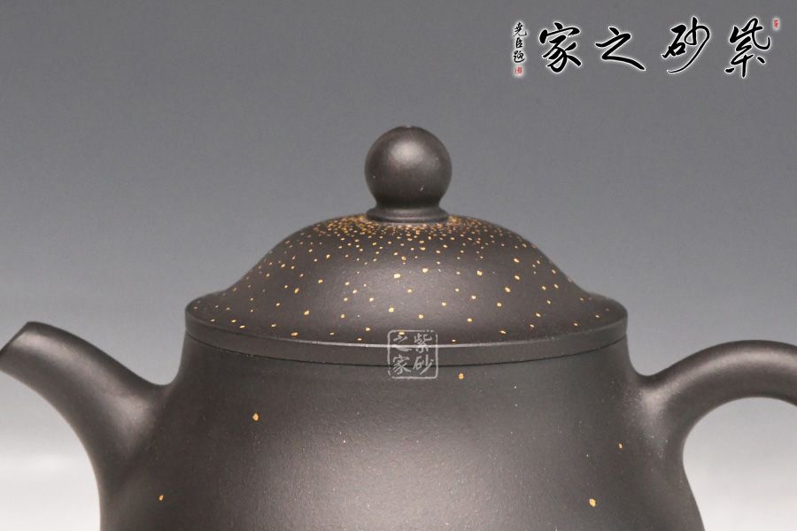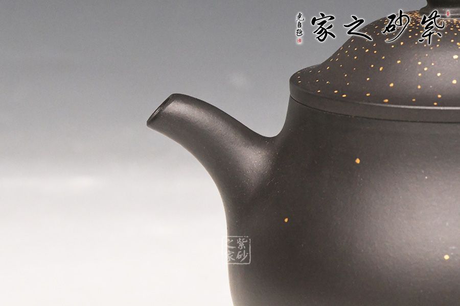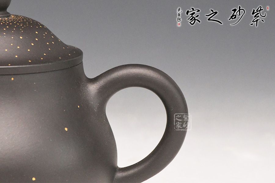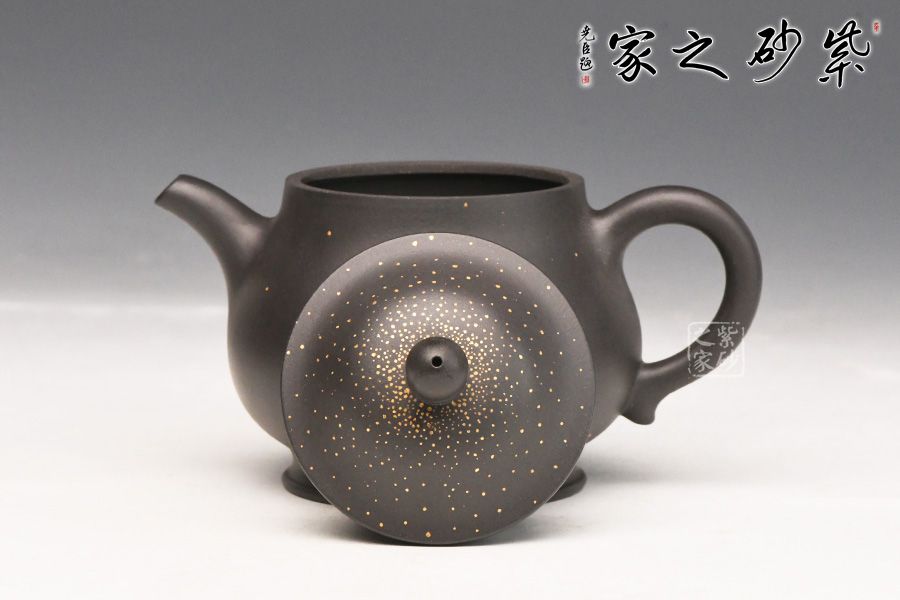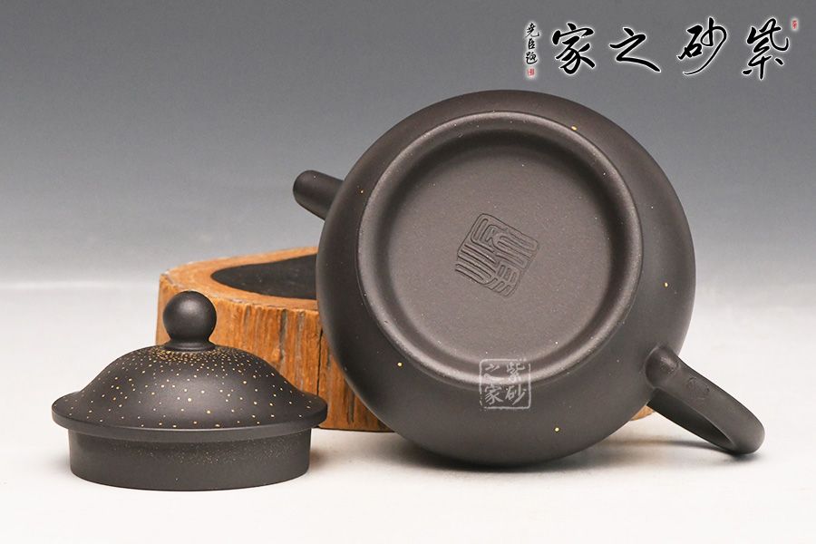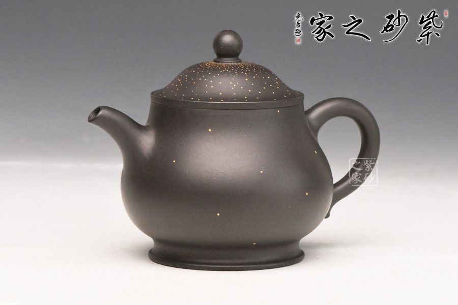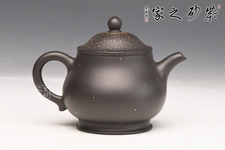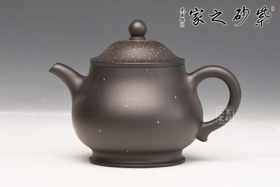 简介:黑泥,其色如墨,似黑夜浩瀚天际,深不可测,配以点点金砂,直如天星闪烁,高挂暗夜长空;神秘静寂、引人神往,故历来深受世人钟爱。为早期最常见通用之泥料之一,因矿脉里铁质成份较高,日久使用,深获早期壶识者深爱、赞赏。养壶者之最爱。新壶初用砂土气重,茶汤略现砂气,经使用壶身展现出灰黑,泡茶鋉数日则如墨黑,泡茶好喝,评价好赞不绝口!