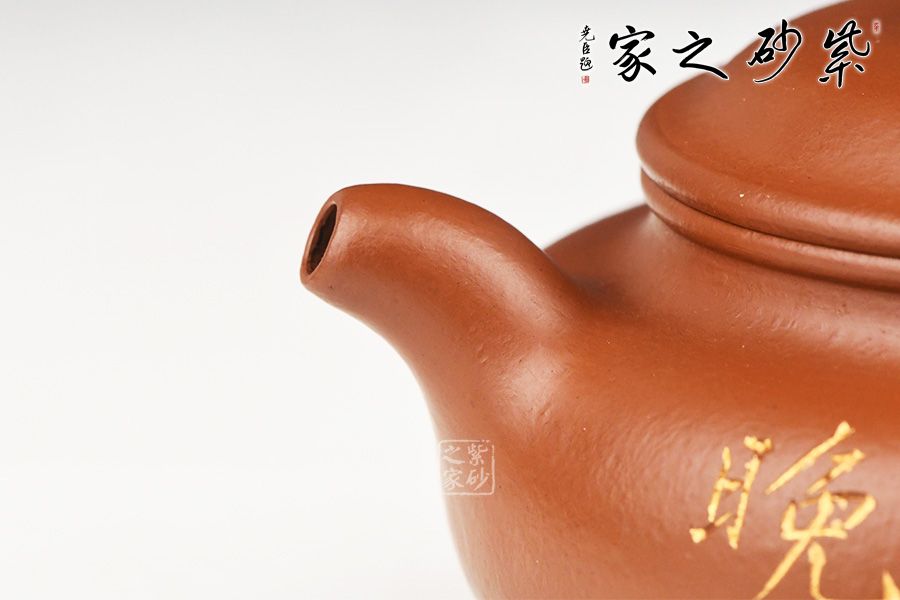 特点:质感绵密、紧实细緻,持之扎实沉重、红润豔丽,泥中极品,无以伦比;泥胚含少许原矿颗粒,冲淋热水后色变极大,呈红中带紫,养壶易现“包浆”之美。
