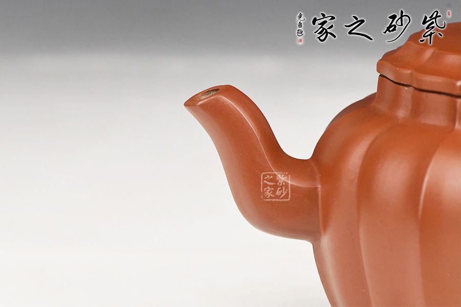特点:质感绵密、紧实细緻,持之扎实沉重、红润豔丽,泥中极品,无以伦比;泥胚含少许原矿颗粒,冲淋热水后色变极大,呈红中带紫,养壶易现“包浆”之美。